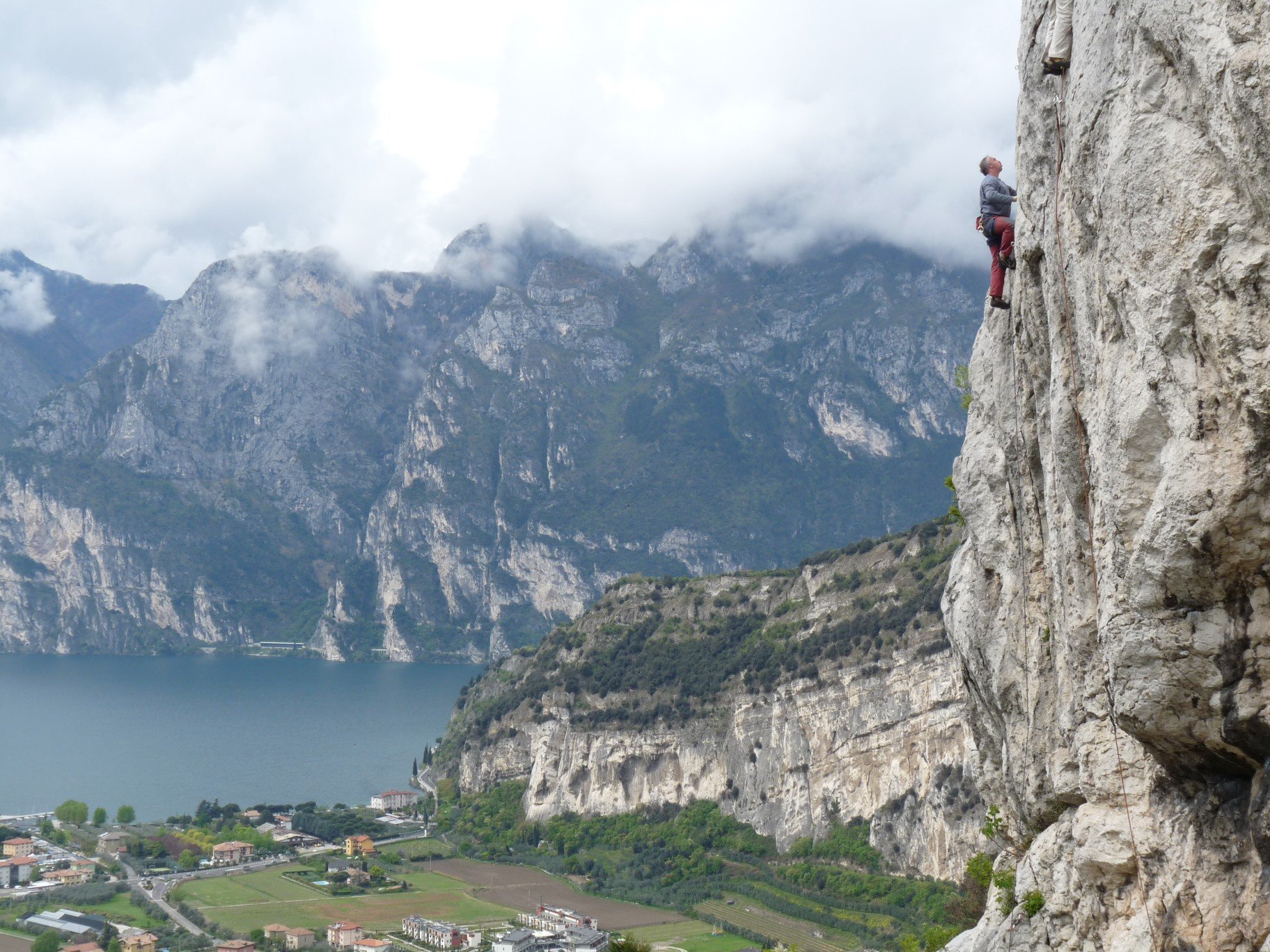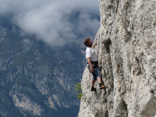 Čtvrtek zahajujeme nákupem, který jsme ve středu nestihli. Lezečky, sedáky, lano. Nabízí se myšlenka vybalit to všechno v Massone z těch nákupních tašek, zeptat se náhodně vybraného lezce, jak se to používá, a střihnout nějakou osmu. Mohl by to bejt dobrej vtípek. Nakonec to ale necháváme být, nikde neni psáno že by se nám ta osma povedla. Na dnes bylo v předpovědi hodně srážek. Jejich vidina vyslala druhé auto na prohlídku Verony, a to byla velká chyba; bylo totiž krásně. Užíváme si super počasí v Massone. Radost mi dělá zejména jedinečná linka "Action direct" za "jde to / jde to těžce". Neuvěřitelně krásný lezení. A navíc, můžu o sobě tvrdit že jsem vylezl Action direct, i když k tomu Action directu ve Frankenjuře to má ještě daleko. Naopak jeden pytel jsem tam zase pověsil, ať se mám na příště na co těšit. Blíží se déšť, tak mažeme do údolí...