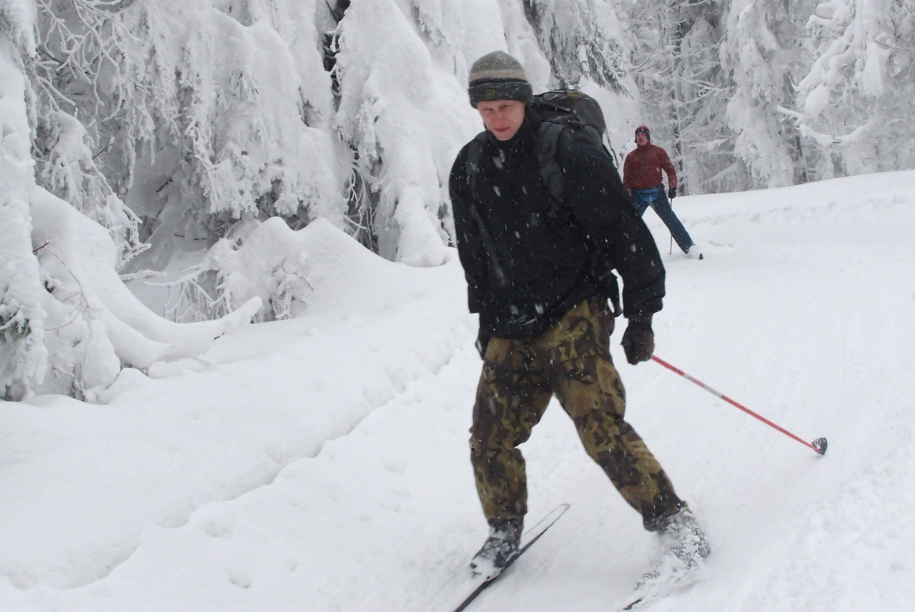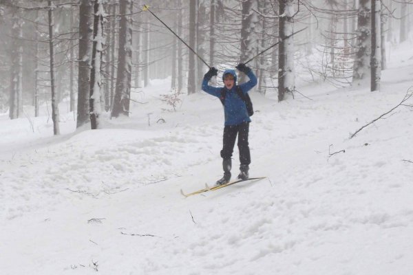 Přejezd se vším všudy, aby naši prďolové měli jednou co předávat dalším generacím. S tím byl naplánován tento den, kterému předcházela kalamitní sněhová nadílka, začínající však ráno v Lanškrouně deštěm. V autobuse vládla dobrá nálada a všech dvanáct dobrodruhů se vykulilo nadšeně na Převáži nad Výprachticemi do stopy. Tygří soutěž byla vyhlášena a prvního tygra si vysekl zanedlouho Honza. O celkové vítězství však nebojoval a pomyslné prvenství si s více než deseti tygry odnesla hned trojice dětí Monča, Áďa a Filip, které přesný počet nedokázali určit. Abychom pošetřili síly, Bukovou horu jsme objeli přes sjezdovky, zbytek trasy přes Suchý vrch do Mladkova byl bez dalších kompromisů a podmínkami s hustým sněžením ztěžujícím dobré namazání, délkou mezi 15 a 21 km (názory se různily) si přejezd nic nezadal s delšími a vyhlášenějšími trasami.