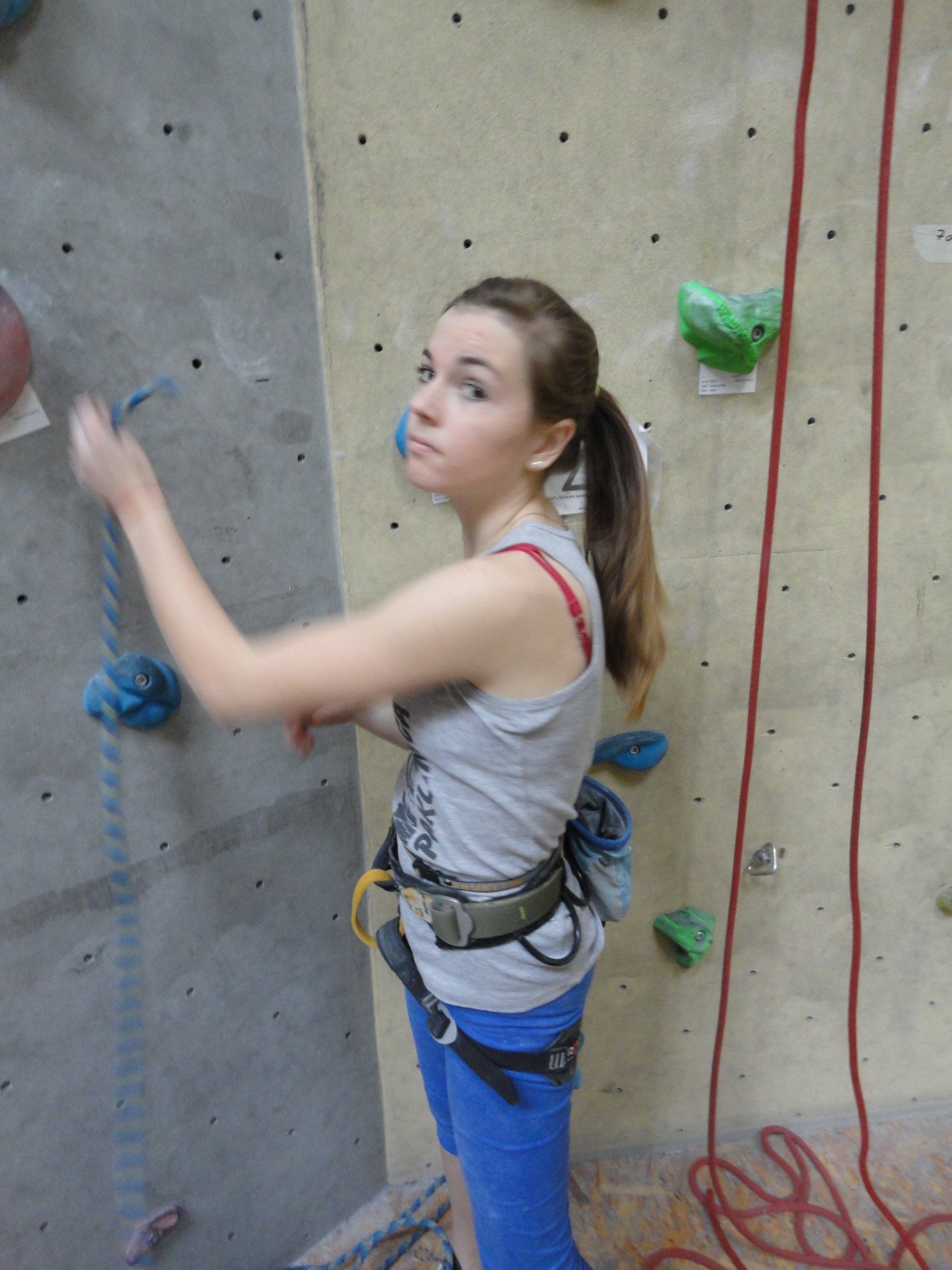 Sraz byl u Alberta. Zbyšek zaspal, tak se pro něj jelo až domů. Do České Třebové jsme jeli autem, potom pokračovali vlakem. Z našeho dívčího osazenstva musel mít spolucestující kluk, kterému jsme kupé obsadily, ohromnou radost. Při čekání na autobus na Klajdu se vyhlásila soutěž o nejvíce párů ponožek, které kdo dostal k Vánocům. S drtivou většinou vyhrál Zbyšek. Na stěně jsme si všichni parádně zalezli. Každý se snažil dosáhnout cíl, který mu Dejv určil. Při odjezdu nechal Kuba ve vlaku lano, takže Gregorovi jeli z České Třebové honit vlak. Vlak dohonili, ale lano už tam nebylo.