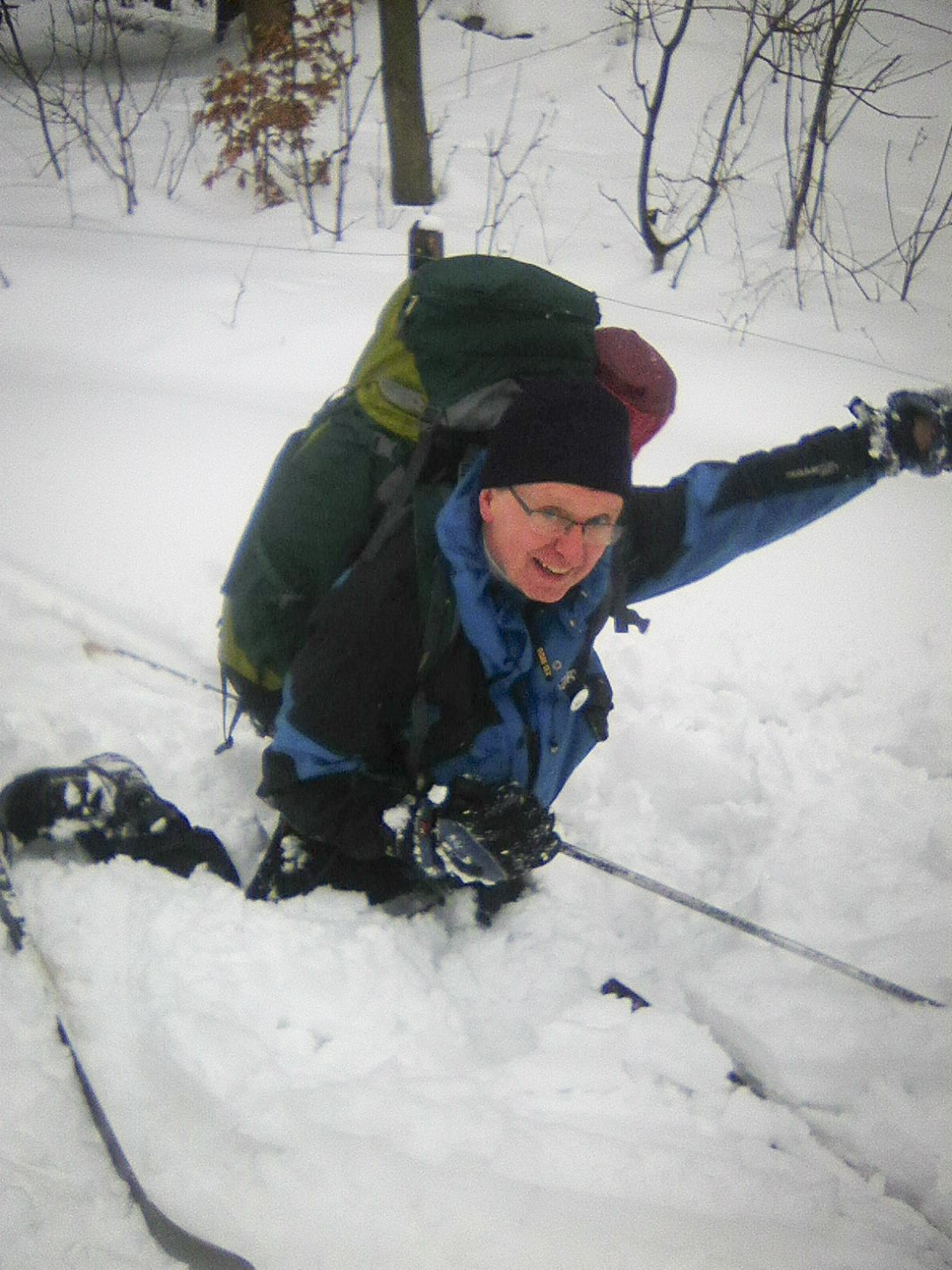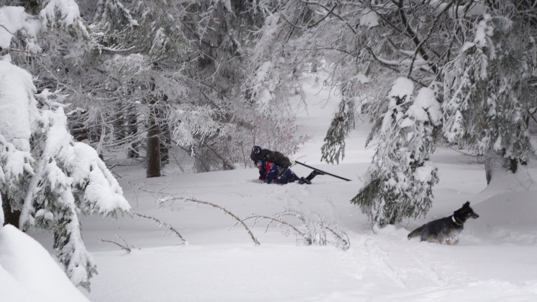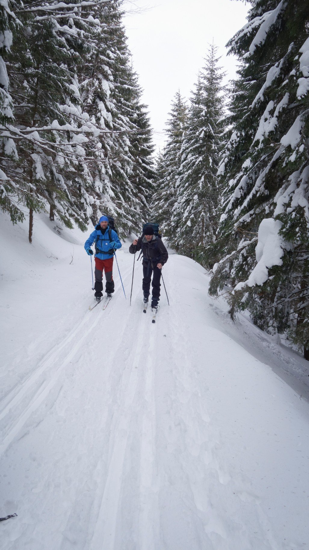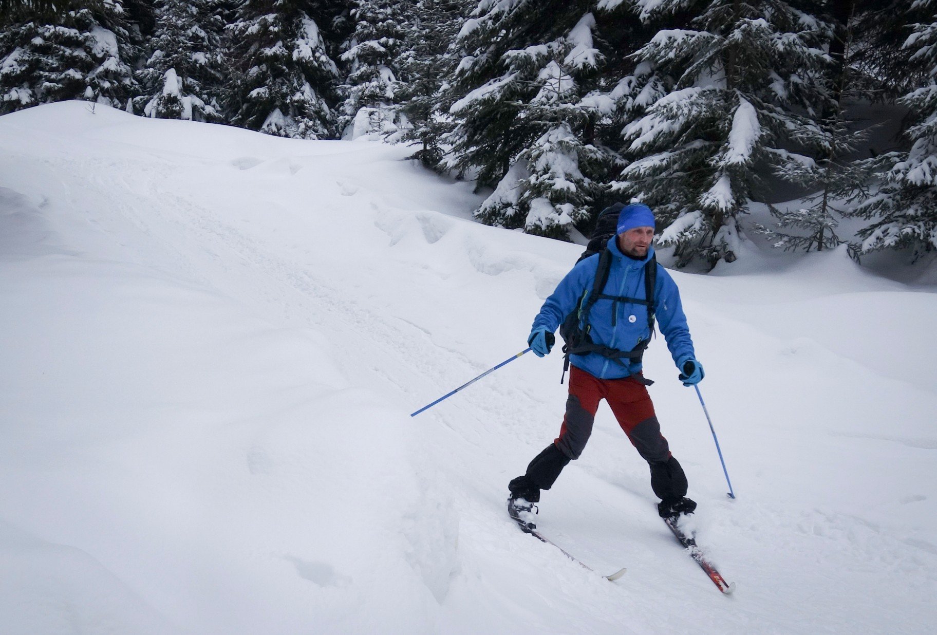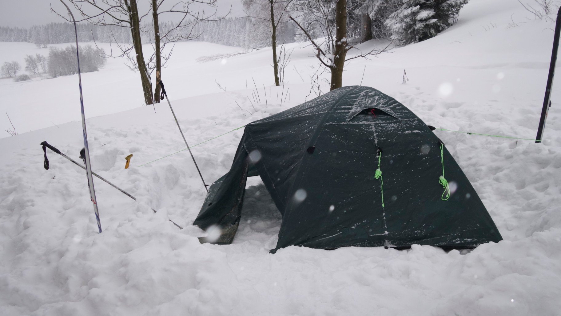 "No ty vypadáš", vítá mě Standa do rána, když si nasadil brýle. Oranžový stan na nás nevybíravě povykuje a zdržuje, aniž by se rozdělil o nějakou dobrotu. Střídáme se v prošlapávání stopy až pod lesní chatu. Tady už musí bojovat s krpálem každý po svém. Charlie naznačuje, kdo bude nezničitelným králem výstupů. Posilnění u chaty je nutností. Na Špičáku jsme přesně v poledne, máme zpoždění. Hřeben je pokrytý prašanem, to je záruka bezpečných pádů. Ze Špičáku jeden tygr, z Břidličného dva. Výstup na Kovadlinu je nekonečný a v dnešku pro mě nejhorší. Návějemi stromečkem, někdy bokem. Zbývá nám polsedních pět kilometrů na Smrk. Dolů musíme lyže sundat. Boříme se po kolena nebo po stehna, jak kdy. Těch pět kiláků nám zabírá dvě a půl hodiny. Smrk nás vítá ve čtyři odpoledne. Měknu a souhlasím s návštěvou Paprsku. Již od včerejška všichni bručí, že bez hospody se nedá přežít a co je tohle za život. Vlévá nám to do žil nový život, pivo, kofolu, čak, čočkovku, praděda a povidlový knedlík. K čemu sakra táhnu tolik žrádla, když navštěvujeme úplně všechny hospody po cestě? "Pánové, tahle je poslední tento víkend, máte vyčerpáno". Tábor rozbíjíme na Chlupenkovci někde mezi Medvědí boudou a Kladskou bránou, přímo na stopě. Noc je klidná a prochumelená, někdo prý chrápal.