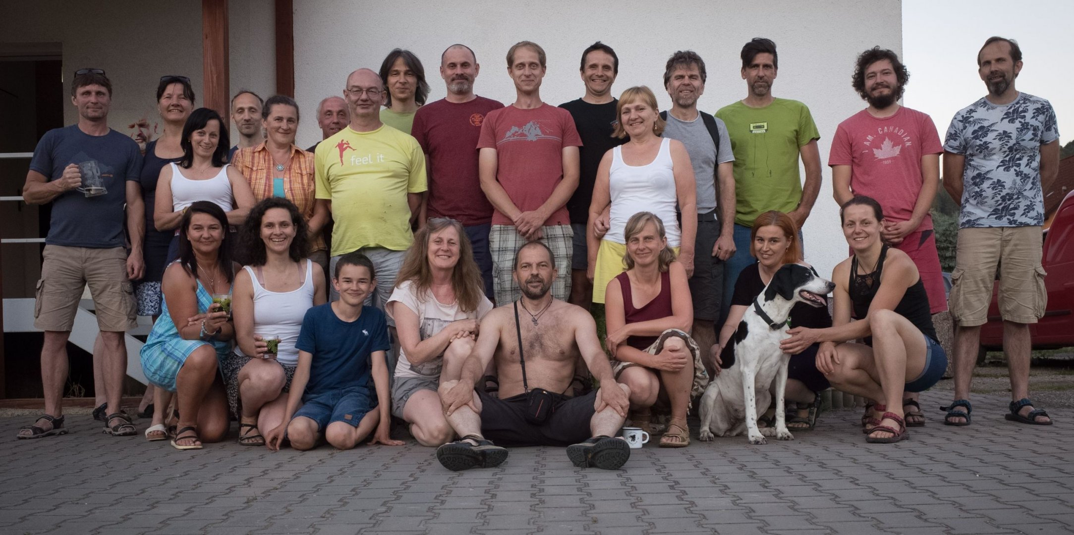 Akce to byla myslím velmi vydařená, bylo vidět, že jsme všichni rádi, že se zase můžeme družit. Pašík byl díky Radkově obětavosti obzvlášť dobře vypečený a jsme rádi, že Radek celodenní pobyt na parném slunci u ohně přežil bez větší újmy, neb chvíli nebylo poznat, kdo že se vlastně griluje a chytá kůrčičku. Pivko jako křen, dorty přežily transport i třicetistupňová vedra a byly luxusní na pohled i na zub. Dary, ač byly zakázané, byly na akci stejně propašovány a udělaly nám ohromnou radost. Děkujééééém. Nečekané množství ručně vyrobených dárků odhalilo další netušené dovednosti našich horolezců. Tradičně vtipné bylo Dementi našeho předsedy, které si tentokrát pohrálo s námi oslavenci. Kytary, zpěvy a rum s colou při ohni udělaly příjemnou tečku.