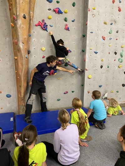 Letošní kroužky jsme rozjeli poslední zářijový den, kdy nám pěkné počasí umožnilo projít zahajovací informace s dětmi a jejich rodiči na dvoře před tělocvičnou. Nováčci zvědavě nakoukli dovnitř obhlédnout stěnu, aby získali představu, co že je to v kroužku bude čekat.