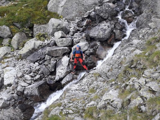 Pohádka - 2.díl: Kde se vzal, tu se vzal, před náma najednou stál, snad Janko nebo Ondráš, v kraťasech, teniskách a tričku, s lahví zatrčenou v kapse a jen tak se zeptal, jestli je na vrcholu kříž. Chvíli jsem nechápal a chvíli si připadal jako hokejista vedle plavce u rybnika - oba mají stejné hřiště, každý v jiném čase a s jinou výbavou. Ranní slunko rozpustilo včerejší ledy a ten slovenský zbojník vyběhl nahoru sestupovkou. V tu chvíli jsme věděli, že dnes slaňovat nebudeme.