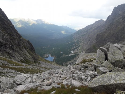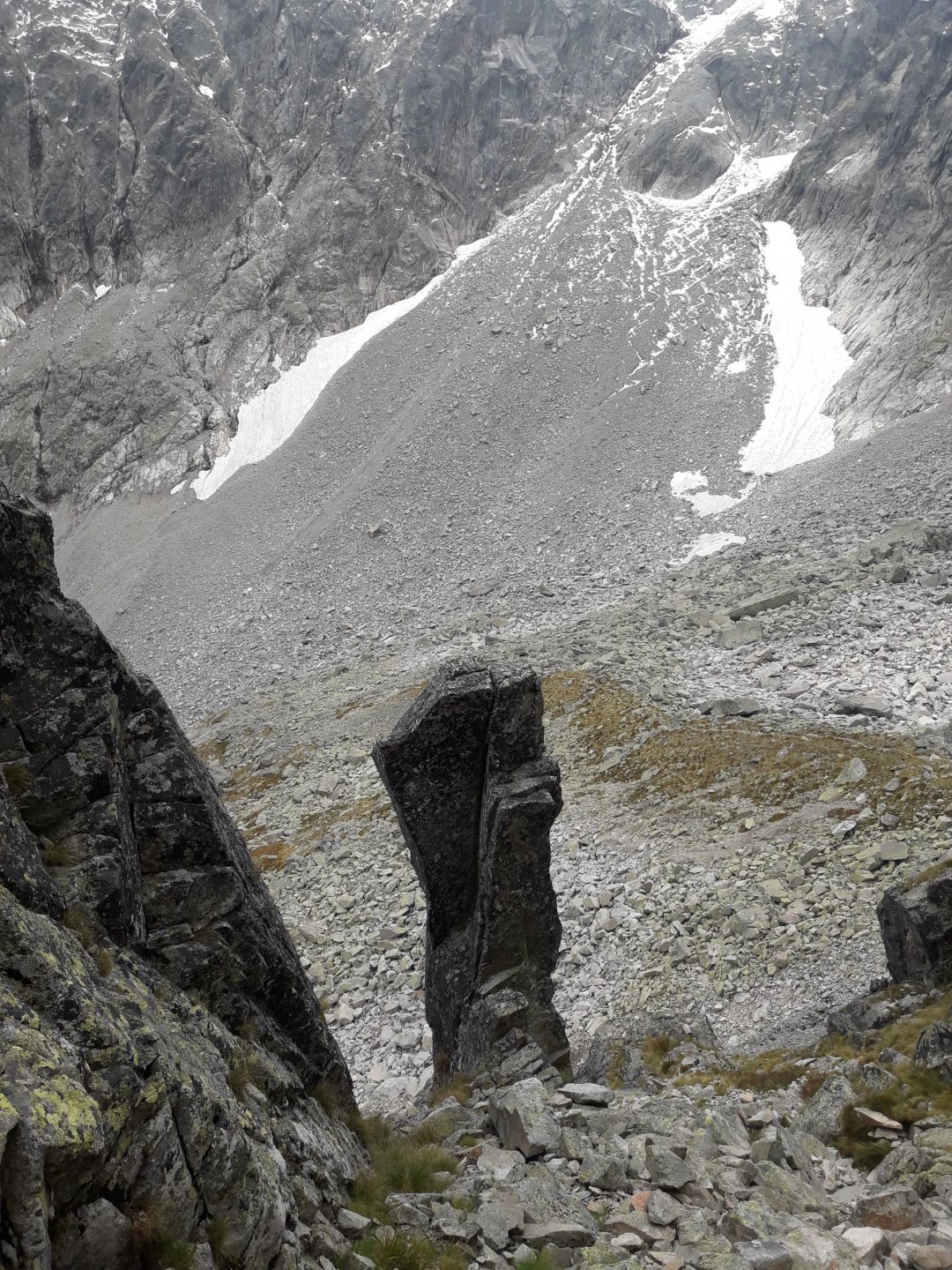 Cestou dolů jsme užívaly výhledy, jen Kolový štit zůstal stále v mracích. Pod stěnou zasloužené pivko a oběd. Bylo fajn ..... Ani v sobotu nikdo lozit nepřišel, jen pár lidiček mířilo do Baraního sedla.
