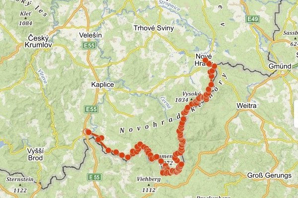 Ráno je azuro a pěkný samec. Budíme se na budíka, cílíme totiž na odjezd vlaku z Nových Hradů, a tak to musí odsýpat. Podjíždíme Janský vrch, napojujeme se na Lužnici, která tu nedaleko v Rakousku pramení a přivádí nás na kouzelné místo bývalé Stříbrné Huti. Odtud začíná pravý koncert Jirky a jeho mobilu, při určování správného směru na každém rozcestí lesních cest. Postupujeme stále nahoru dolu podél hranice, míjíme Žofínský prales a pokračujeme k Vysoké, kterou chceme mírně obejít. Obcházení nás tak zaujme, že ji obejdeme až do Hojné Vody a tím neplánovaně opustíme plánovaný směr. Navíc na vyvěšené mapě zjišťujeme, že koleje do Nových Hradů opravdu nevedou. Tyto skutečnosti znamenají toto: dál půjdeme jinudy; k vlaku to nemáme posledních kilometrů deset ale patnáct; nejspíš to nestihneme.