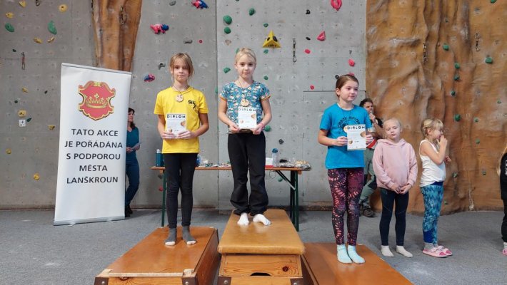 Na mladé závodníky čekaly vždy 2 cesty na obtížnost, 2 bouldery a jedna cesta na rychlost. Celkem přijelo 97 sportovců v šesti věkových kategoriích. Největší konkurence přijela v kategorii U12 dívky, kde se sešlo hned 16 lezkyň. Na domácí půdě se dařilo především dívkám. V U14 si oddílový souboj o 1. a 2. místo střihla Linda Kolomá s Katkou Holečkovou. Šťastnější byla nakonec Linda díky rychlosti, která se Katce nepovedla. Druhý oddílový souboj svedla Magdalena Dvořáková s Klárou Mikulovou v béčkách. Magda si ale nejlépe ze všech poradila v obtížnosti i boulderu a tak ji až 3. rychlost o prvenství nepřipravila. Kláru zase musí těšit, že opustila své „sběratelství“ čtvrtých míst a zaslouženě se postavila na bednu. Na bednu se postavil taky Tomáš Čada, který skončil v U12 jen těsně druhý za Václavem Řehákem z Prahy. První místo si připsala i Nela Hanzlíčková, ale ta neměla v kategorii A+J soupeřky a tak ani hůř skončit nemohla.