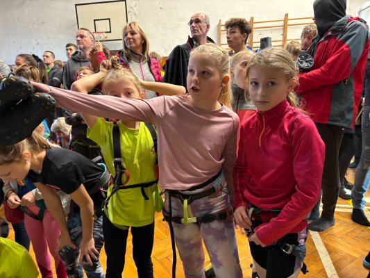 Letos jsme na závodech spolupracovali se sportcentrem Forea, kde se lezly závodní bouldery. Díky blízkosti obou stěn se tím ještě zvedla úroveň závodů a odlehčilo se tělocvičně na ZŠ A. Jiráska. O bouldery se postaral Petr Jirsa a jeho stavěčský tým složený ze sportovních lezců.