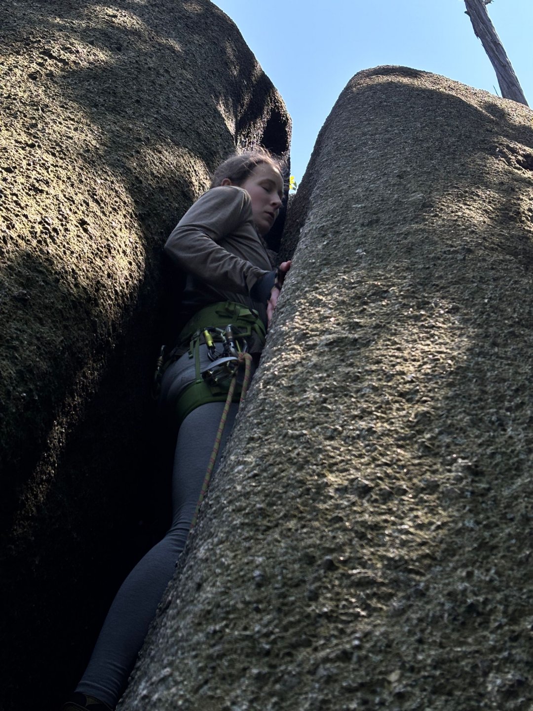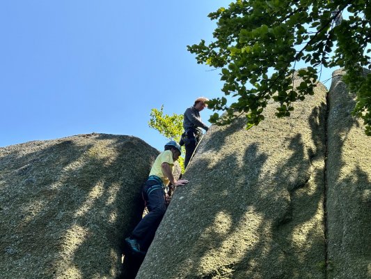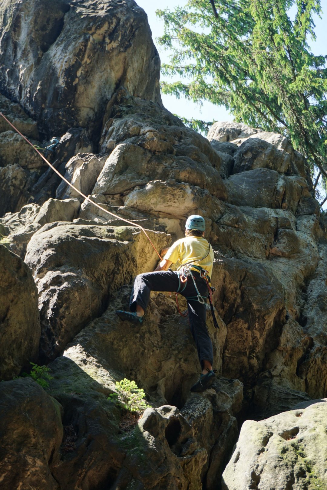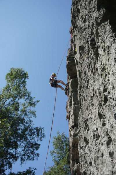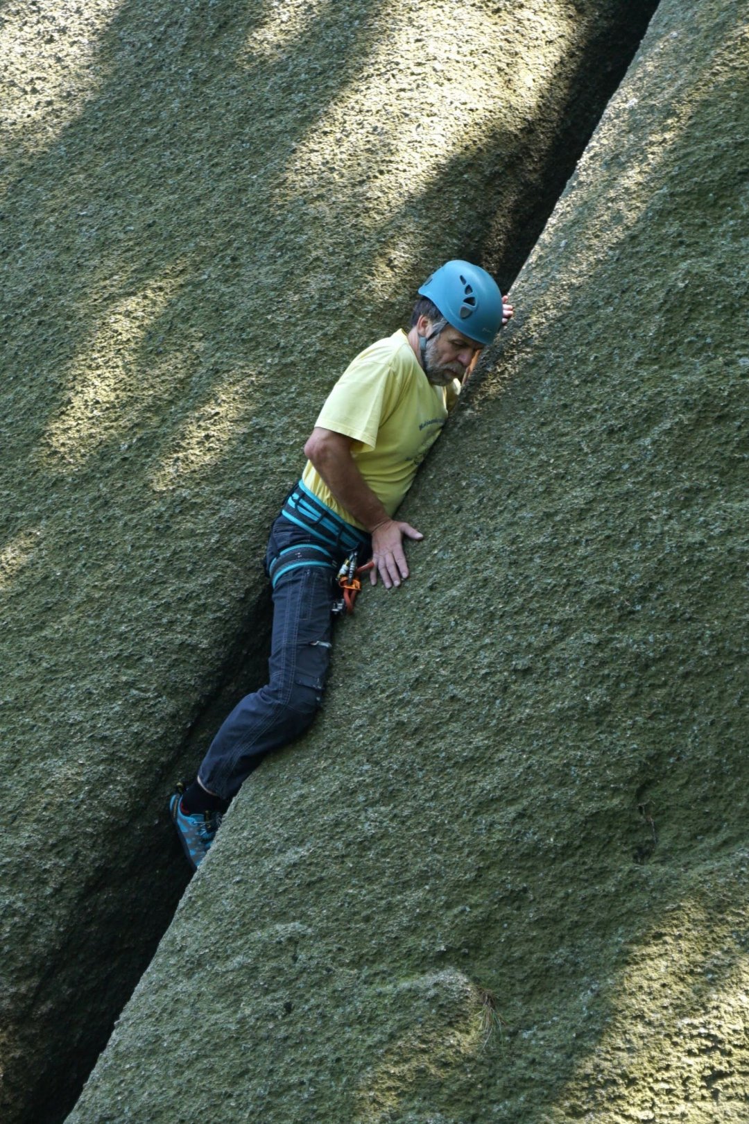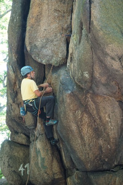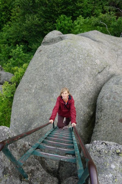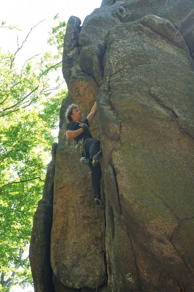 Ráno před budíčkem se jdu s Fousem projít po místním opevnění a ještě stíháme okouknout nedaleké Fellerovky. Po snídani vyrážíme směr Oldřichovské sedlo. Tam se potkáváme s Dančou a Lubošem a vyrážíme směr věž Zvon. Zbyšek táhne jednu cestu, já druhou a postupně je nás nahoře víc než dole. Ještě lezeme na Ostrém hřebeni a následně se přesouváme do hospůdky U Kozy. Tam si Danča dává místní specialitu se záhadným názvem Nevím a pak se rozdělujeme každý za svým dobrodružstvím. Petřina skupinka jde na Skalnatý hrad, Danča s Lubošem jedou na Horní skály a ostatní domů. Cestou projíždíme polskou elektrárnou Turów. Na chatě už na nás čeká Stelda a za chvilku přijíždí Lucka s rodinou. Večer sedíme u ohně a pozorujeme jak Steldovi pes okusuje nenápadně špekáček.
