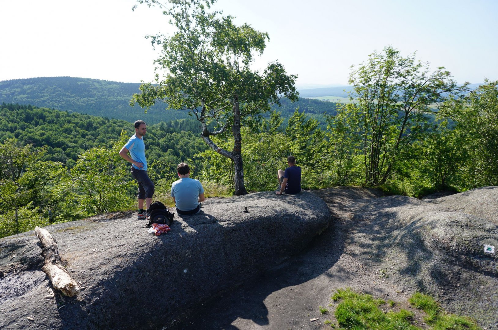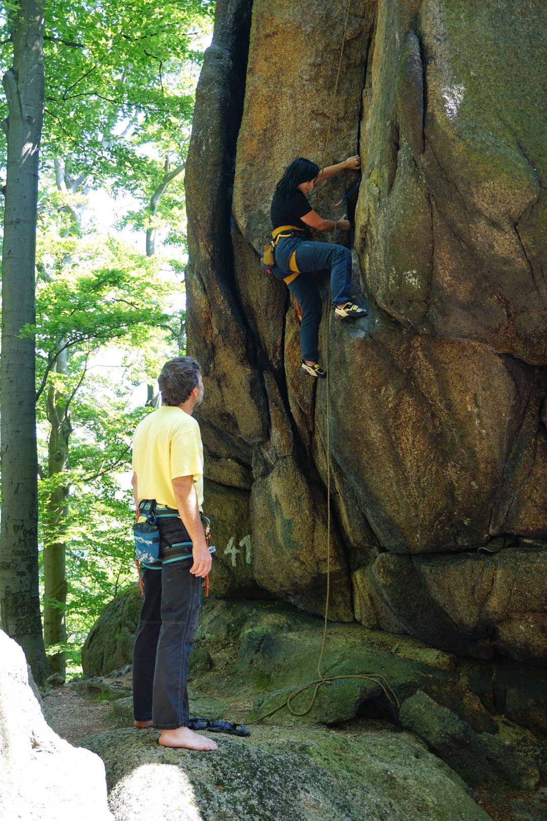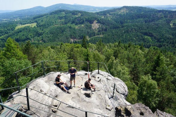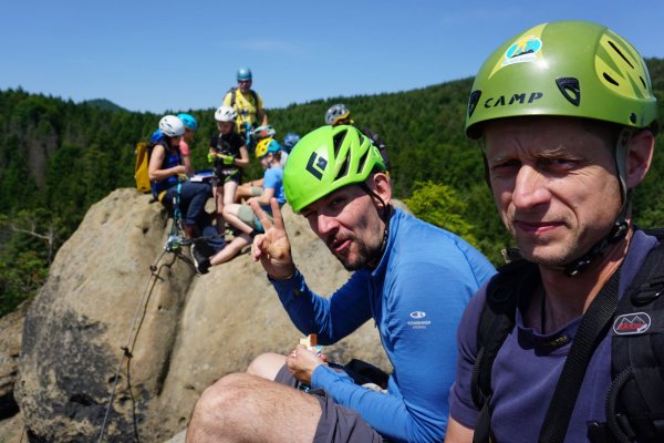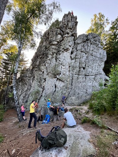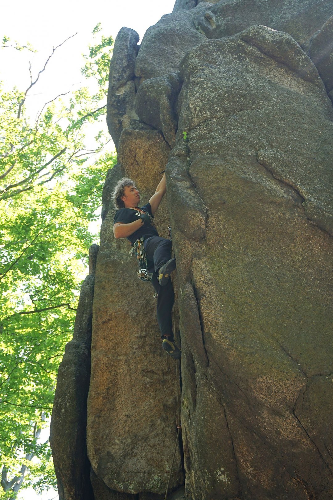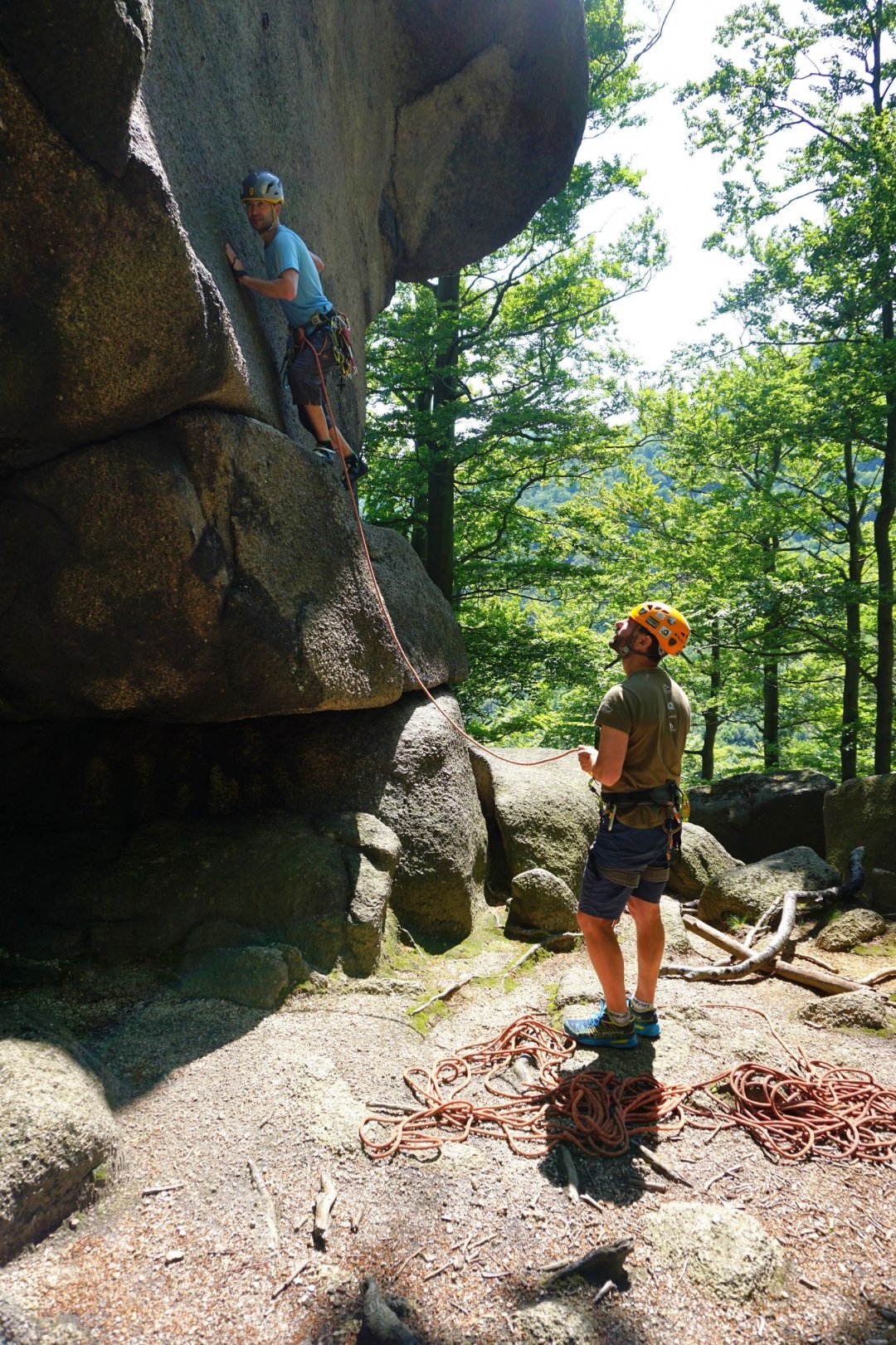 První výprava byla v Tatrách, další rok se putovalo do Alp a letos padla volba na Lužické hory. S Charlim časově zvládáme vyrazit o den dříve, tak neváháme a už ve středu po obědě parkujeme v Jizerských horách ve Smědavě. Pěkným okruhem přes rozhlednu na Čihadle přicházíme na majestátní rozeklané žulové skály Frýdlantské cimbuří. No, něco takového jsme v Jizerkách nečekali, připadáme si tady jak někde na Fatře. Krásné místo. Ze Smědavy pak autem nabíráme směr Jablonec a nebyla by to akce Mladých horalů, aby nebylo trošku průpravy, a to v disciplíně zdravověda. Horské chalupy, cesta a na ní ležící zakrvácená postava. Charli reaguje zcela profesionálně a troufám si říct, že by na závodech dosáhl plného počtu bodů. Postaršího horala předáváme přivolané záchrance a s hodinovým zpožděním přijíždíme na pěkný pozemek Hanky Honsové, kde přespáváme. No a dopoledne už jedeme do Horního sedla, kde potkáváme Fouse s Dušanem a další povídání už přenechám Dušanovi coby největšímu znalci Lužických hor a neúnavnému plánovači naší každé volné chvilky.