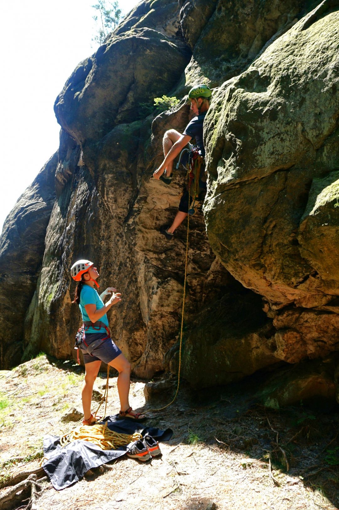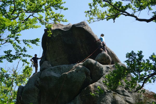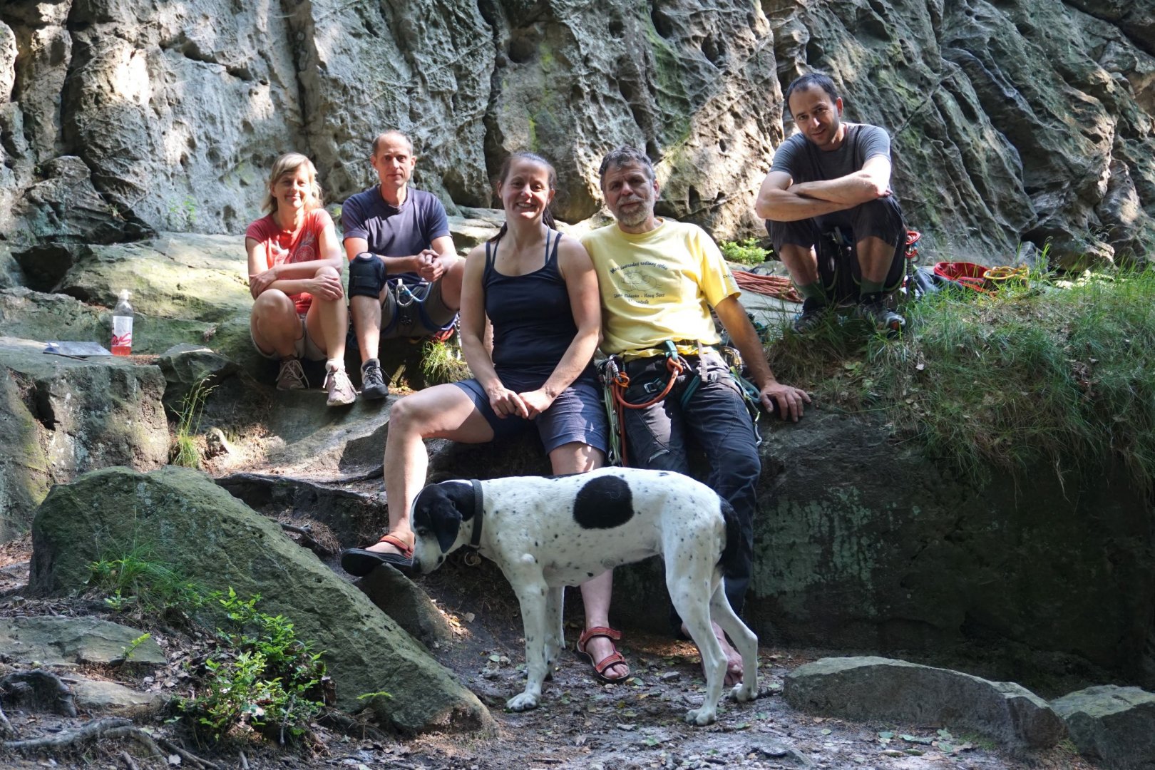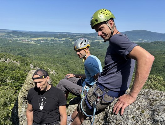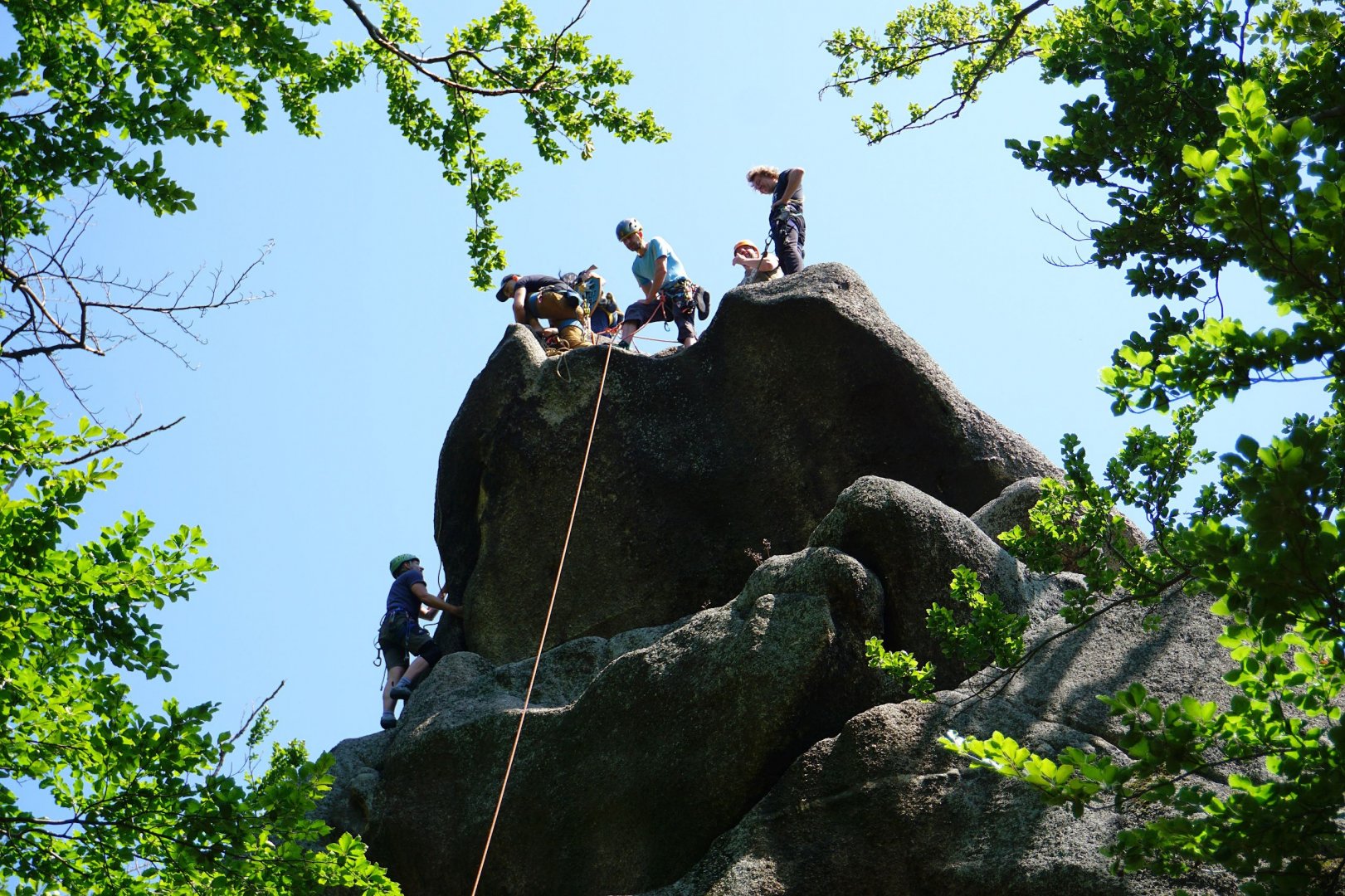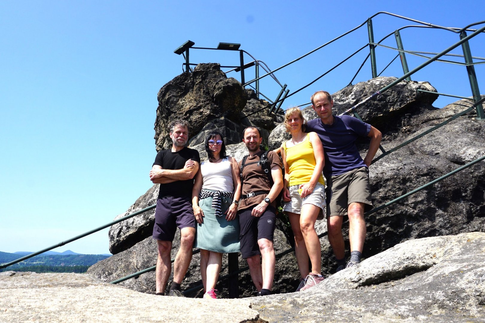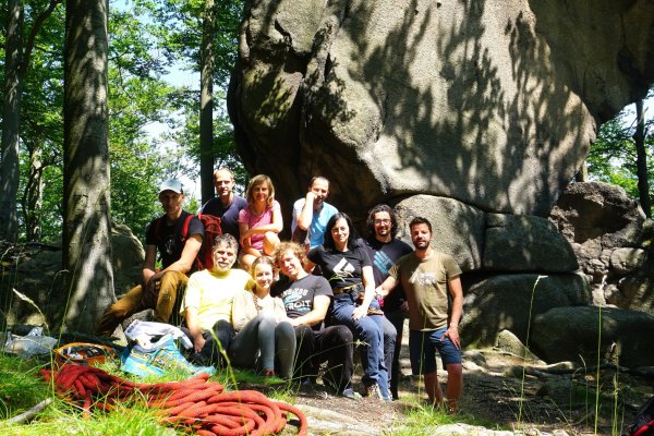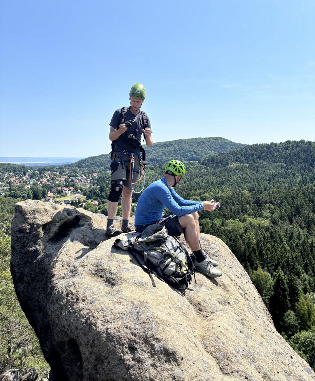 První výprava byla v Tatrách, další rok se putovalo do Alp a letos padla volba na Lužické hory. S Charlim časově zvládáme vyrazit o den dříve, tak neváháme a už ve středu po obědě parkujeme v Jizerských horách ve Smědavě. Pěkným okruhem přes rozhlednu na Čihadle přicházíme na majestátní rozeklané žulové skály Frýdlantské cimbuří. No, něco takového jsme v Jizerkách nečekali, připadáme si tady jak někde na Fatře. Krásné místo. Ze Smědavy pak autem nabíráme směr Jablonec a nebyla by to akce Mladých horalů, aby nebylo trošku průpravy, a to v disciplíně zdravověda. Horské chalupy, cesta a na ní ležící zakrvácená postava. Charli reaguje zcela profesionálně a troufám si říct, že by na závodech dosáhl plného počtu bodů. Postaršího horala předáváme přivolané záchrance a s hodinovým zpožděním přijíždíme na pěkný pozemek Hanky Honsové, kde přespáváme. No a dopoledne už jedeme do Horního sedla, kde potkáváme Fouse s Dušanem a další povídání už přenechám Dušanovi coby největšímu znalci Lužických hor a neúnavnému plánovači naší každé volné chvilky.
