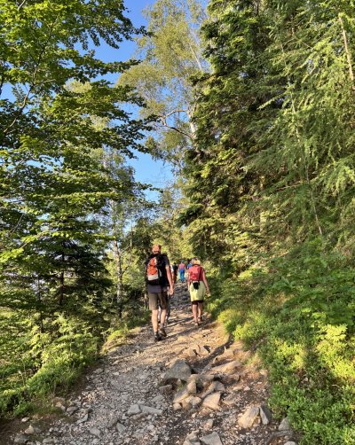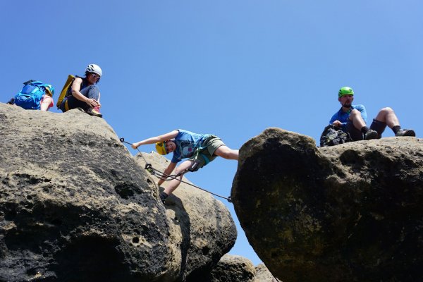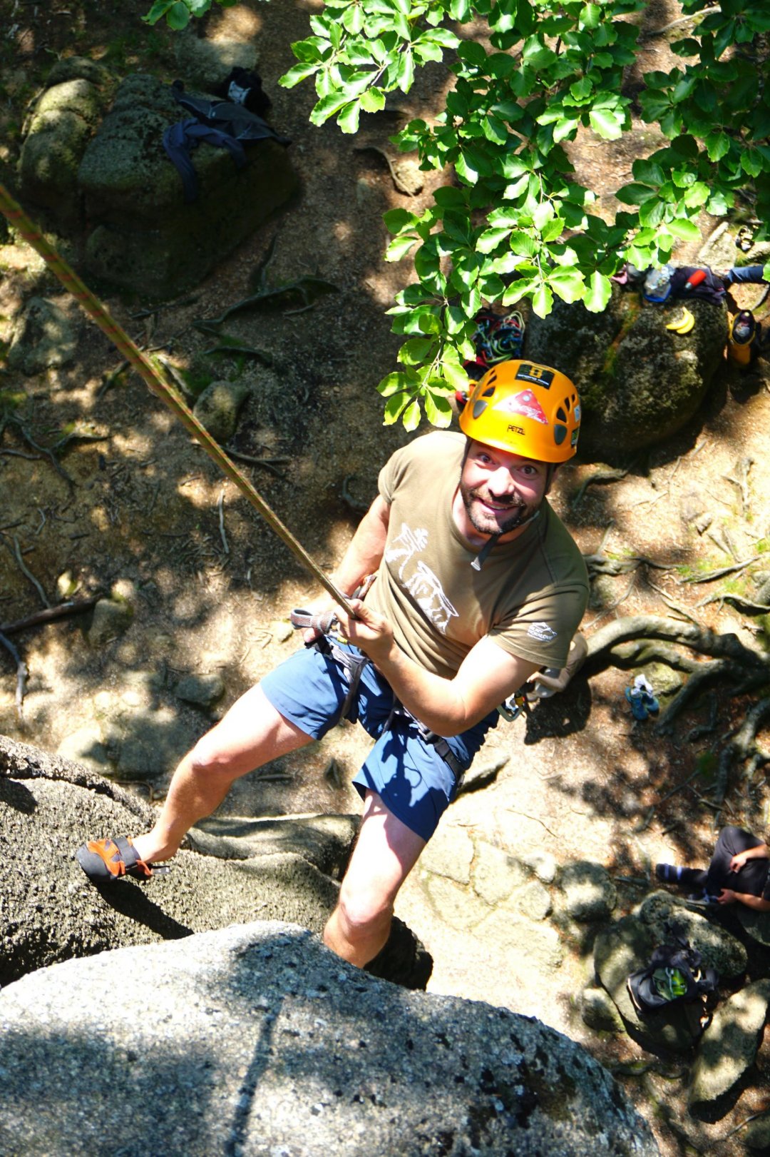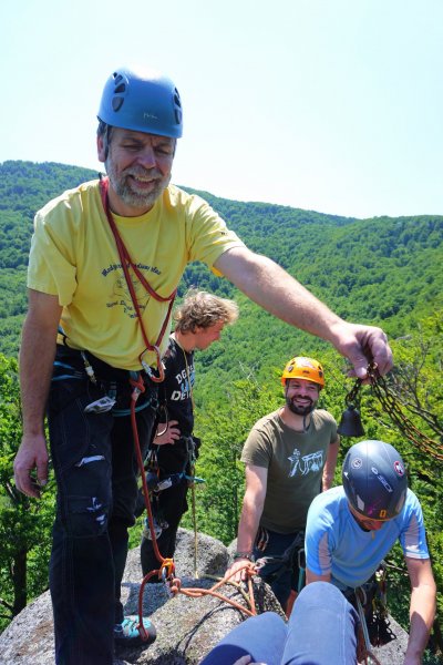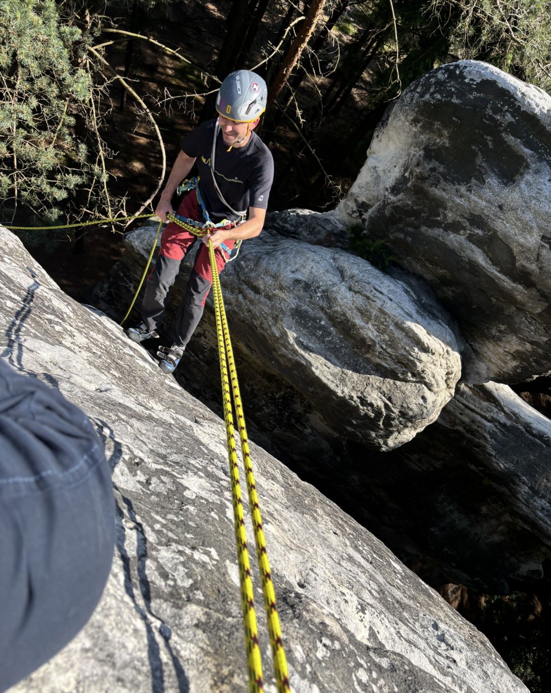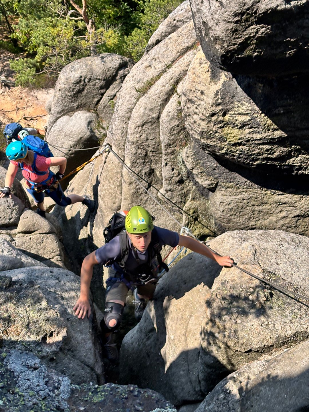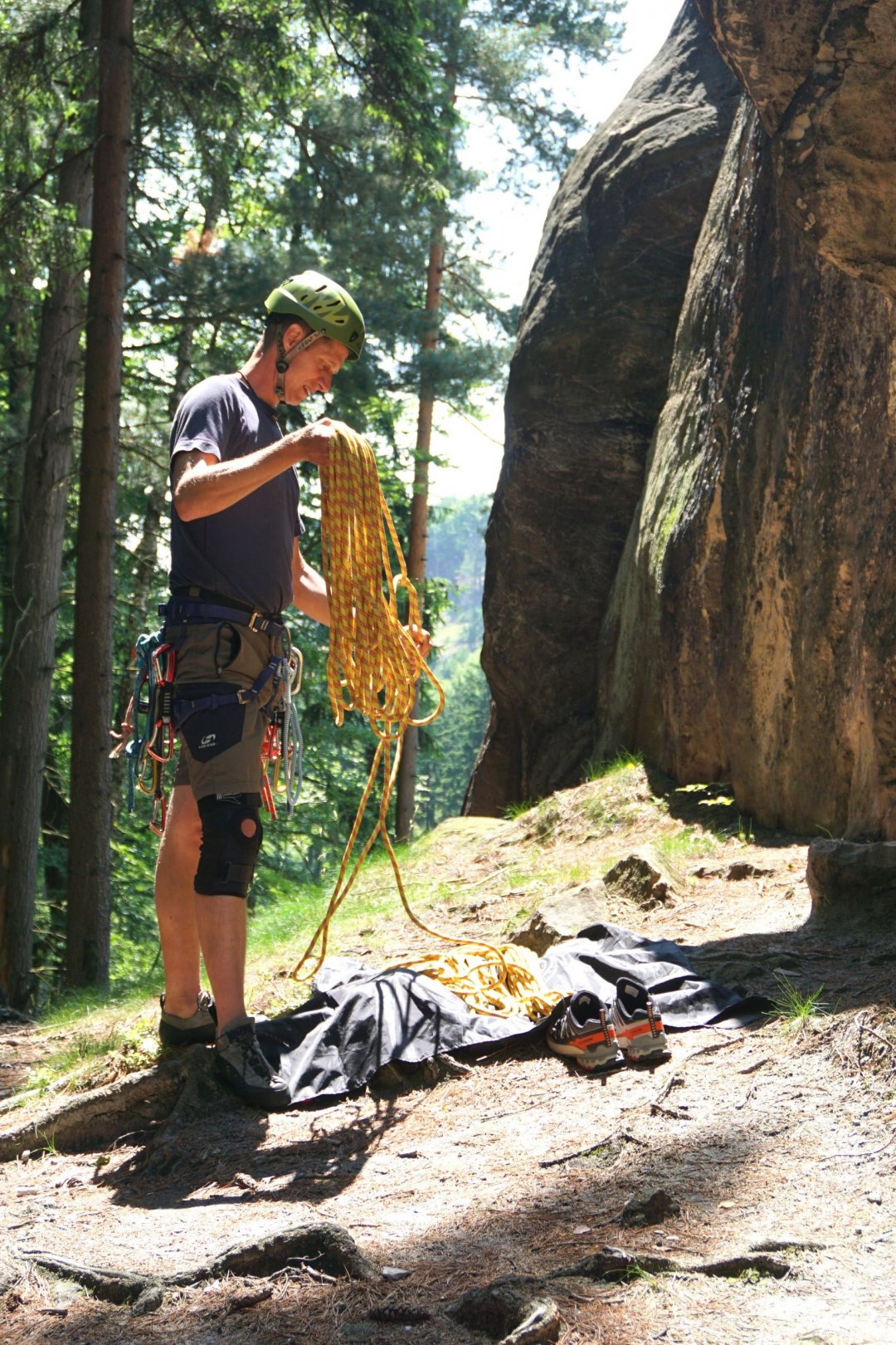 První výprava byla v Tatrách, další rok se putovalo do Alp a letos padla volba na Lužické hory. S Charlim časově zvládáme vyrazit o den dříve, tak neváháme a už ve středu po obědě parkujeme v Jizerských horách ve Smědavě. Pěkným okruhem přes rozhlednu na Čihadle přicházíme na majestátní rozeklané žulové skály Frýdlantské cimbuří. No, něco takového jsme v Jizerkách nečekali, připadáme si tady jak někde na Fatře. Krásné místo. Ze Smědavy pak autem nabíráme směr Jablonec a nebyla by to akce Mladých horalů, aby nebylo trošku průpravy, a to v disciplíně zdravověda. Horské chalupy, cesta a na ní ležící zakrvácená postava. Charli reaguje zcela profesionálně a troufám si říct, že by na závodech dosáhl plného počtu bodů. Postaršího horala předáváme přivolané záchrance a s hodinovým zpožděním přijíždíme na pěkný pozemek Hanky Honsové, kde přespáváme. No a dopoledne už jedeme do Horního sedla, kde potkáváme Fouse s Dušanem a další povídání už přenechám Dušanovi coby největšímu znalci Lužických hor a neúnavnému plánovači naší každé volné chvilky.