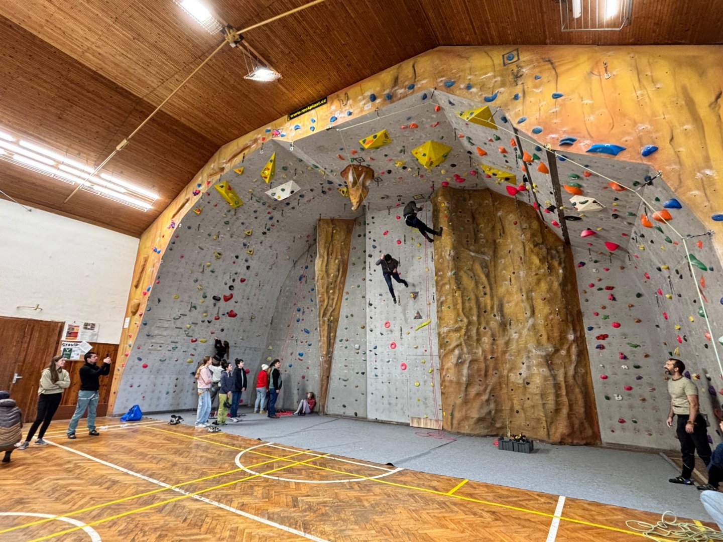 Tradičně patří štědrodenní hodinka před polednem setkání horolezců na naší stěně. Letošní účast byla opravdu překvapující, sešlo se kupa celých rodin vč. našich budoucích nadějí, které v tělocvičně dělají své první krůčky. Ti o poznání starší něco málo polezli, pojedli a hlavně si "jumpnuli". Protože Štědrý den s sebou nese i oblíbený vánoční jump. Za jeho jištění letos patří díky Zbyškovi a Lukymu.
