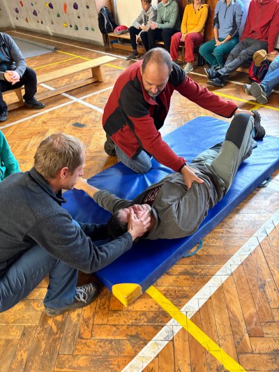 Rčení „Opakování je matka moudrosti” převzaté z latiny či naše české „Kdo je připraven, není zaskočen” platí při poskytování první pomoci více než kdekoli jinde. Proto jsme se rozhodli opět uspařádat školení pro všechny členy HK, zejména ty službudržící a pracující s mládeží. Dorazilo i několik rodičů, kteří nám pomáhají na různých akcích, vč. dětí.
