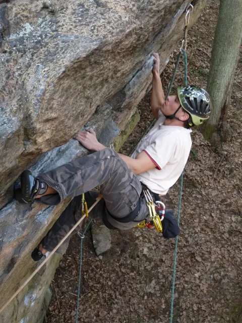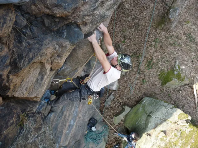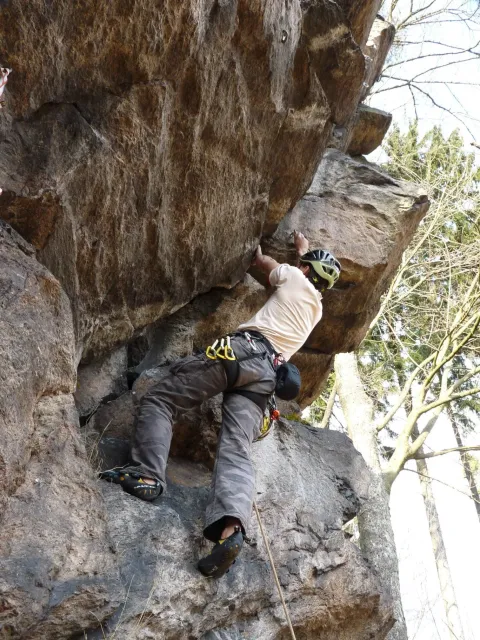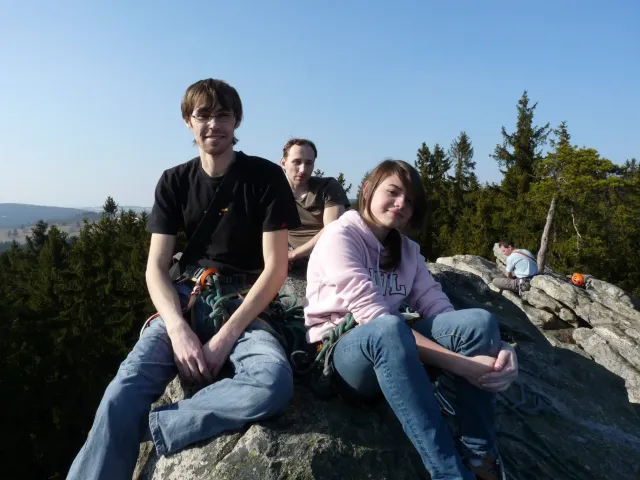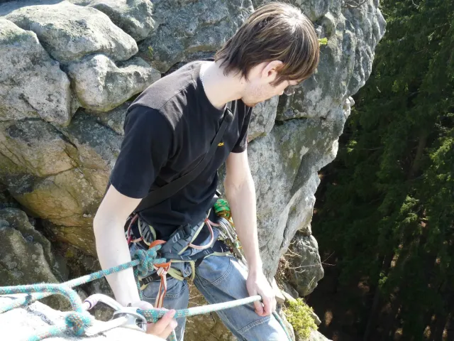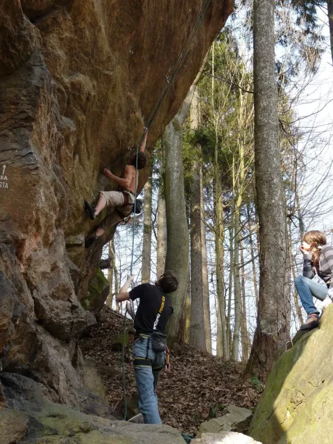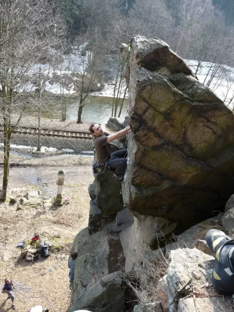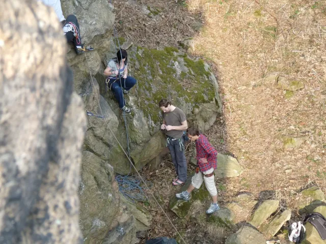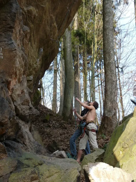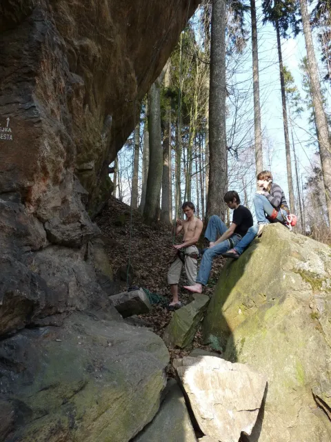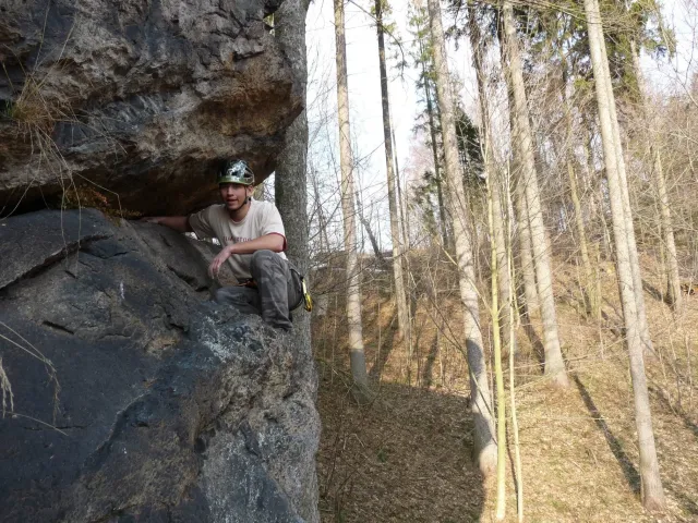 Prázdninový víkend 17. - 18. března přímo vybízel k výletu do skal. Dejvovi se podařilo zorganizovat team a mohlo se vyrazit směr skály. Původní cíl Mladkov byl cestou poupraven a jelo se na Vysočinu. “Palice” nás přivítaly zalité sluncem, sněhu už bylo naštěstí jen poskrovnu a již přítomných lezců tak akorát... Směle jsme se dali do lezení a užívali si jarního sluníčka, kterého v tuto brzkou jarní dobu bylo nad očekávání. Ani v neděli jsme nezůstali doma, k naší sestavě ze soboty (D.U., N.B., D.S. a L.S.) se přidal ještě Marťas z ČT a hurá směr Mladkov. Lidí kupodivu málo, lezení super. Z našich oddílových přibyl ještě Pechy s přítelkyní. Všichni jsme si dobře zalezli, Dejv stihl navíc i fotodokumentaci a prověrku našich znalostí, které se nám snažil již vloni vtlouci do hlav. Příště to asi bude chtít větší silou Dejve :-), neb se ty uzle stále někomu (mně?) pletou. Dejv, doufám, přidá co nevidět fotky a tak se můžete kochat, jak nám to po zimě šlo na Tore Venecii, Ještěřici, Hokejce, San Martinu, Variantě či Sasso Lungu. Marťas zdolal Růži a Dejva na Koblížkovi nikdo nezvěčnil. Ale šlo mu to skvěle, tak snad někdy příště...