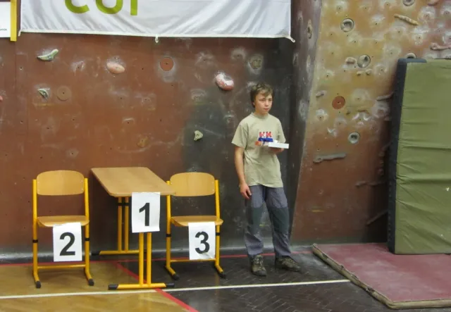 V sobotu jsme se v 7.00 hodin sešli u Alberta. Jeli jsme přibližně hodinu a půl a dojeli jsme do Jeseníku. Nejdříve jsme se zaregistrovali, až na Markétku, která si zapomněla zdravotní prohlídku. Následovalo předlezení závodních cest a start. Po první kvalifikaci v kategorii E byl Matěj 3., v kategorii D Honzík 6., v kategorii C Tomáš 7. a Terka 1. a v kategorii B Anička 4., Zbyšek 3,50 Kuba 8. a Vojta 14. Po 2. kvalifikačce byl Matěj 8., Honzík byl 7., Tomáš 10., Terka 1., Anička 3., Zbyšek 4., Kuba 11. a Vojta 9,50. Do finále postoupili všichni až na Vojtu a Tomáše. Vojta skončil 2. pod čarou tedy 10. a Tomáš 1. pod čarou tedy 9. Po dlouhém boji ve finále skončil Matěj 4., Honzík 6., Tomáš 9., Terka 2., Anička 2. MS, Zbyšek 4. a Kuba 7.