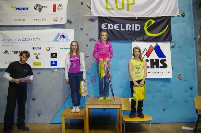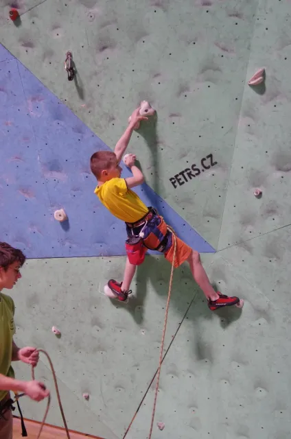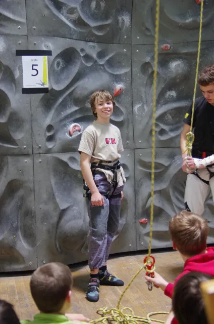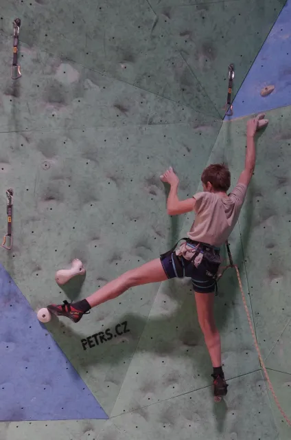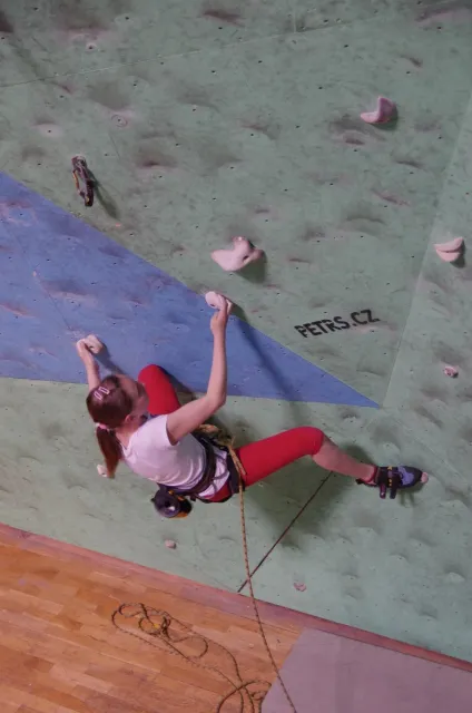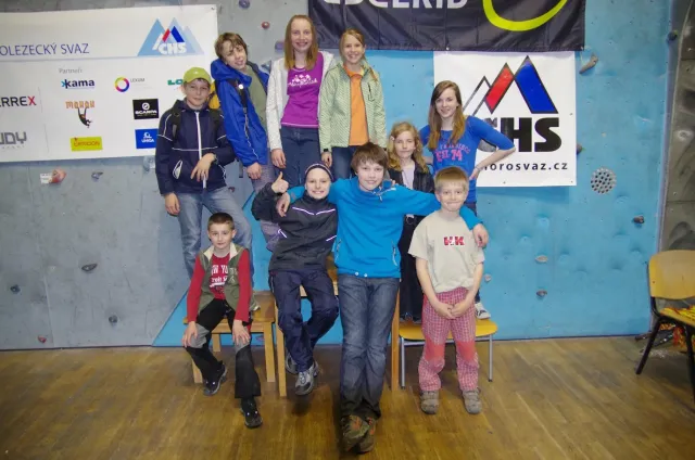 V sobotu jsme se sešli v 6.10 hodin u Alberta. Autama jsme jeli do České Třebové a odtud vlakem do Prahy. v Praze jsme nastoupili na tramvaj a potom jsme přestoupili na bus a dojeli jsme až na Cibulku. Když jsme vešli do arény na chvíli jsme mysleli, že se otočíme a jedeme domů, protože tam bylo hodně lidí, ale nakonec jsme se nevzdali a vydrželi jsme tam až dokonce. V prezentaci bylo přihlášených rekordních 207 dětí z toho skoro 100 v nejmladších kategorii E a D. Byly tam úzké, železné schody po kterých jsme museli vyjít nahoru, aby jsme si tam dali věci. Z balkónu byla vidět stěna, na které jsme lezli. Organizace nebyla uplně výborná, byli na tom podobně jako ve Vyškově. Kvalifikační cesty jsme dolezli až po obědě. Stěna byla podobná jako u nás, ale měla ještě boulderovku, která sloužila později i jako izolace. Do finále postoupili Terka, Anička, Zbyšek, Andrea, Matěj, Lukášek a nepostoupili Tomáš, Honzík, Markétka, Kuba a Monča, která skončila těsně pod čarou. Finále bylo dlouhé a napínavé, ale Terka nakonec vybojovala 2. místo, přelezla jí jenom Majda Růžičková z Brna. Andrea skončila 1. MS (mimo soutěž), Lukášek 2. MS a Anička 3. MS. Zbyšek skončil 6. stejně tak i Matěj. Kvůli nám proběhlo předběžné vyhlášení, abychom stihli autobus, metro a vlak. Stejně jsme to nestihli a museli jsme čekat na další spoj, který však jel během 20 minut. Všichni si jízdu ve vlaku velmi užili (zvláště holky), až na jejich spolucestující. Z České Třebové do Lanškrouna jame jeli auty, také Fous nám přijel naproti. Vrátili jsme se okolo půl jedenácté, takže letošní rekord v nejdelších závodech zatím drží Praha.