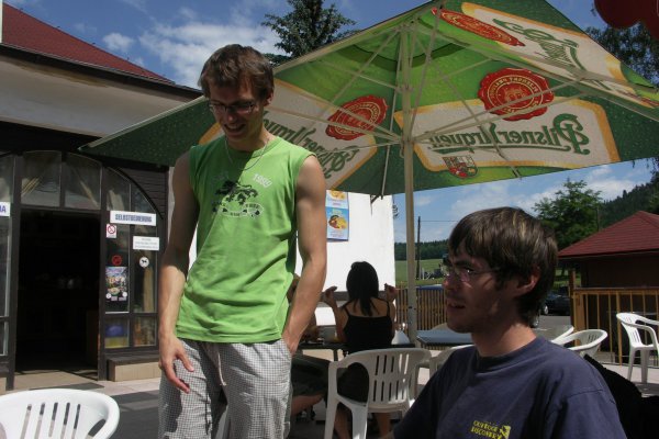 "Týjo čau Bohoušku, co ty tu?" vítáme se s právě příchozím kamarádem z HO Vrchlabí. Prostě takový ráno v Ádru na terase. Jak by to tu člověk mohl nemít rád.