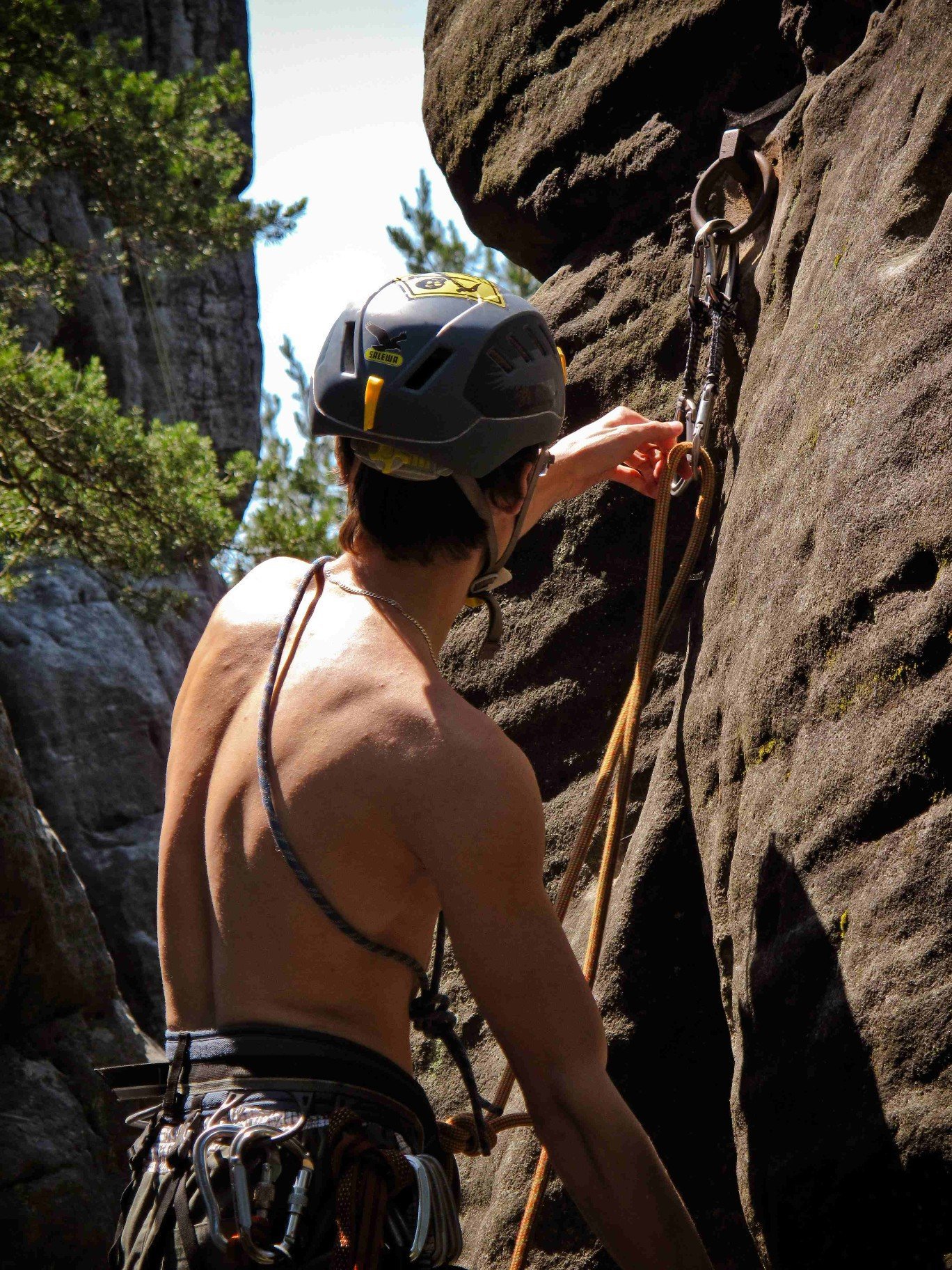 My se taky stěhujem. Nejdřív jenom vedle k Óčku, kde kluci lezou nádhernou "Otcovskou" a pak naproti na Kruhovou. Posílám Michala do "Sokolíka". Jeho první cesta na písku. Přes tři kruhy. Myslím, že se mu bude líbit. Pro sebe si vybírám "Spáru". Nalezu, nechápu, slezu. Nalezu, netušim, slezu. Nalezu, založim bambuli, vytrhnu bambuli, slezu. Taková vtipná šestková spárka...To přece musí jít, to přece nevzdám. No, nakonec to šlo - těžce a se strachem. Ještě že to maminka neviděla. Snad by mě Zbýša chytl do náruče, jiný jištění tam totiž nebylo...