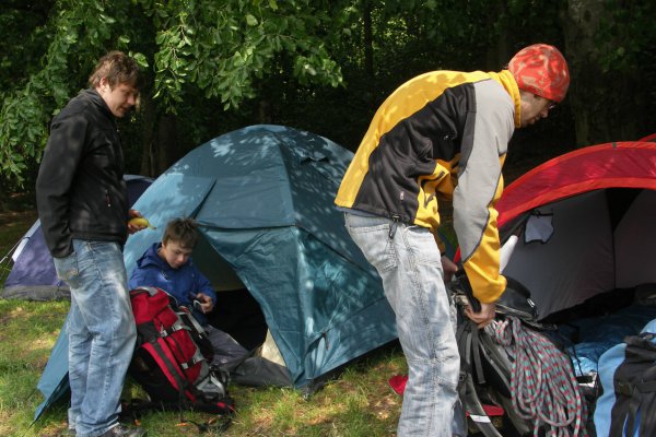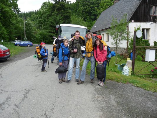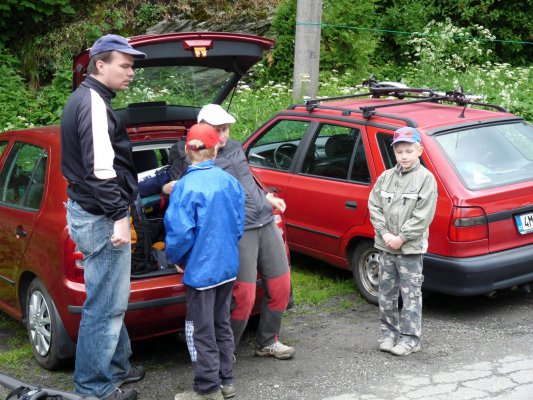 Začínáme ráno v sedm před Penny. Dokupujeme poslední zásoby a nasedáme do aut směr Rabštejn. Posádku mého automobilu čeká radostná cesta (nevím jak ostatní auta). Hned za Lanškrounem chce polovina posádky vysadit Zbyšana, ale Dejv nás přemlouvá ať si ho necháme, že prý bude běhat dolů pro pivo. Na Laudoně se mi v autě rozsvěcí kontrolka chlazení motoru a hned je o zábavu postaráno. Dejv čte v příručce k automobilu jak ovládat volan. No prostě sranda.