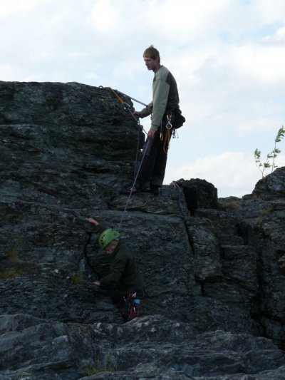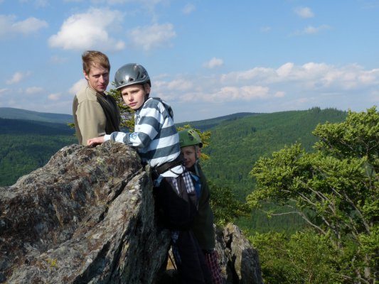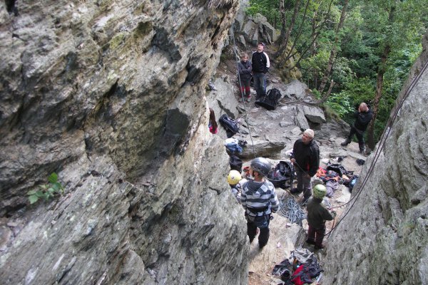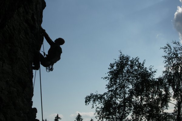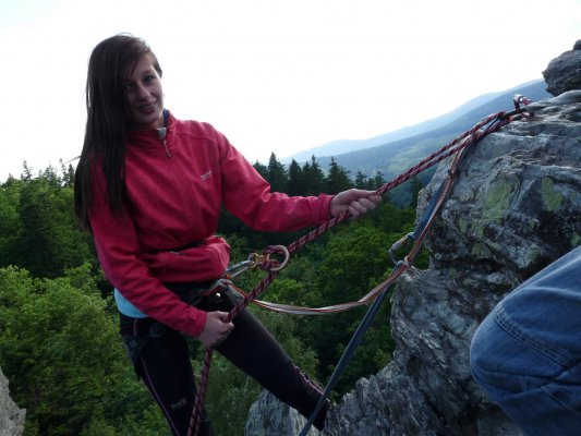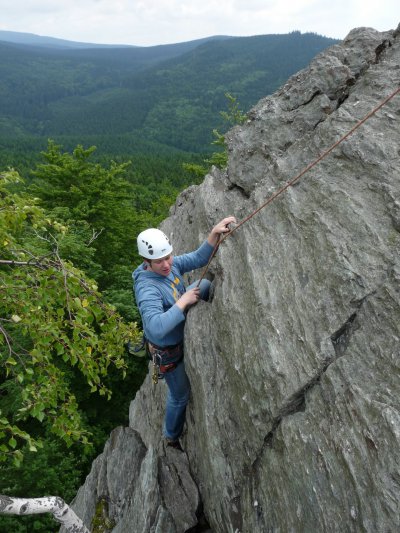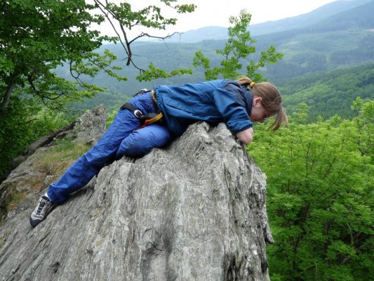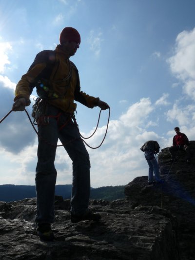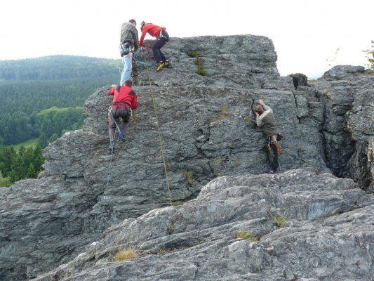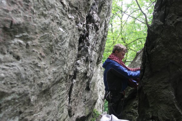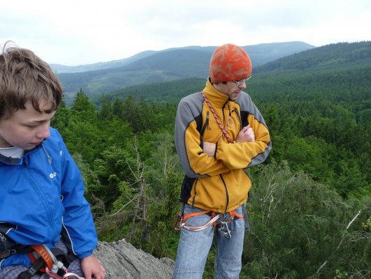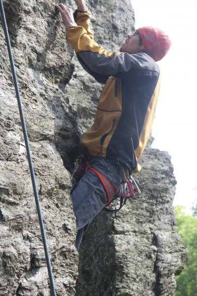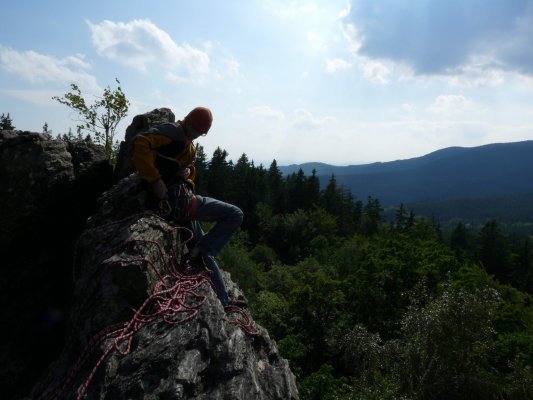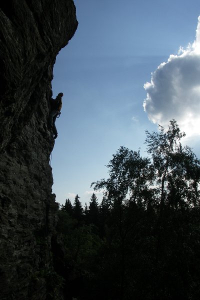 Směřujeme k Dubu. Přelezem pár cest, ale strašlivě fouká. Sejdeme na klobásu a já pak musím domů.