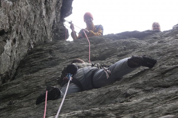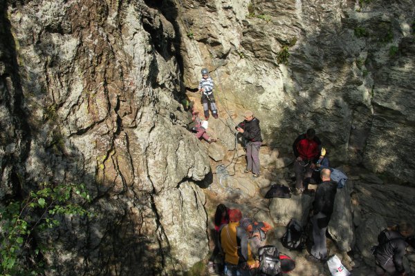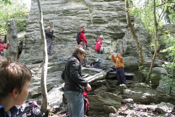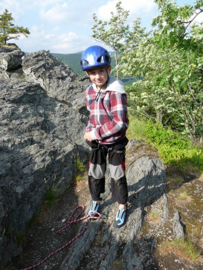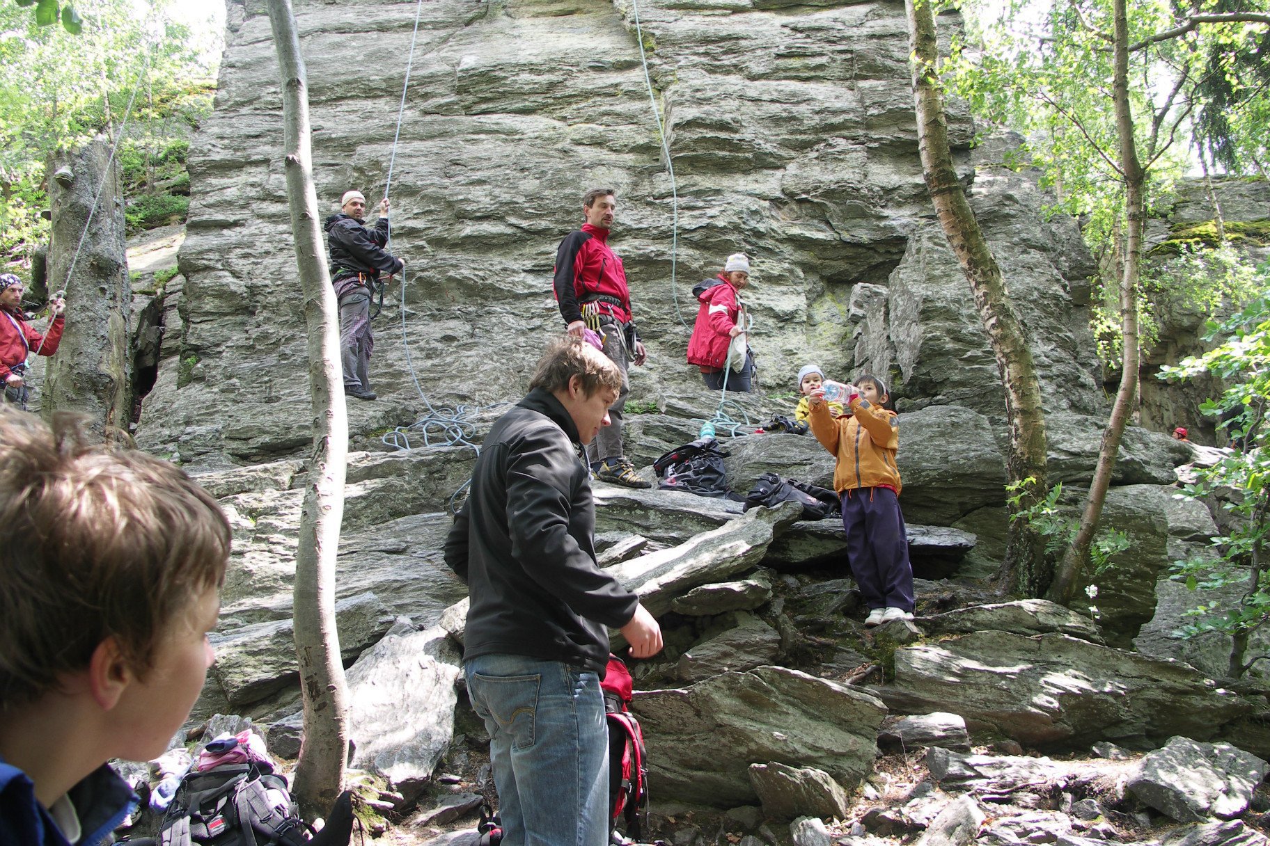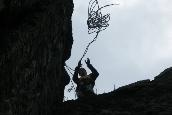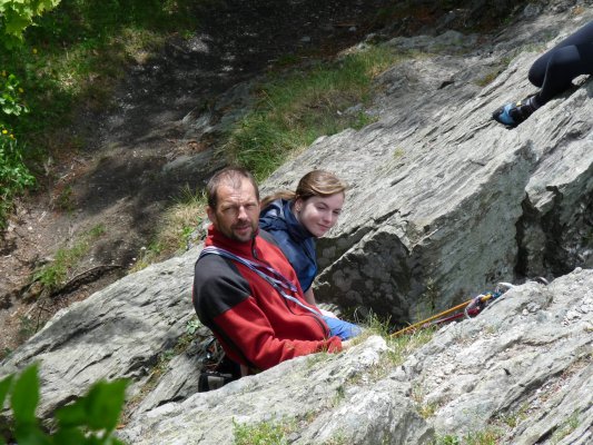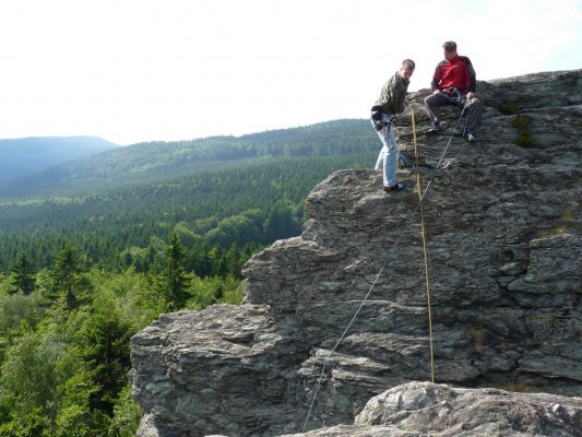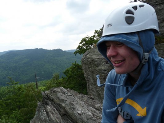 Směřujeme k Dubu. Přelezem pár cest, ale strašlivě fouká. Sejdeme na klobásu a já pak musím domů.