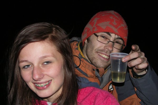 V Šumperku si dáváme kafíčko a hurá pod kopec. Parkoviště je zabrané pro svatebčany a tak parkujeme na kraji. Na hoře jsme v cuku-letu. Před hospodou jsme pohoštěni svatebním chlebem s máslem. Dejv par rozbaluje svůj 2 sekunďák (kterému to dnes trvé 8 sekund - přece je jen trochu chladno, tak kdo by spěchal).