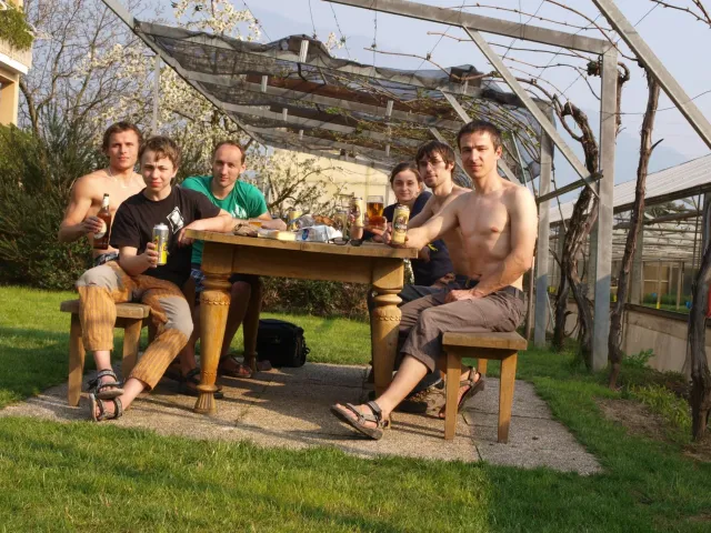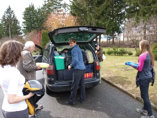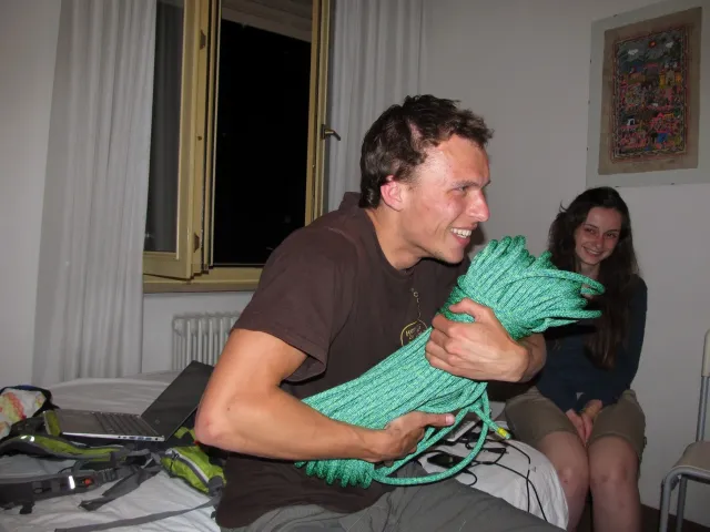 Pro naše horolezecké družstvo (Áďa, Anička, Danča, Kuba, Zdenek) byl cílem dnešního dne trénink na naší domovské stěně dle instrukcí trenéra Dejva, prý abychom nezapomněli bušit na překližce. Než jsme tam dorazili, museli jsme podstoupit poslední bitvy o koupelnu, otravné balení, které nám Danča zpříjemnila výbornými palačinkami a Petra kafíčkem, loučení s ostatními horolezeckými družstvy, nákup suvenýrů, pamlsků a pak už jen cestu přes polovinu střední Evropy (část i s otevřenými 5. dveřmi auta).
