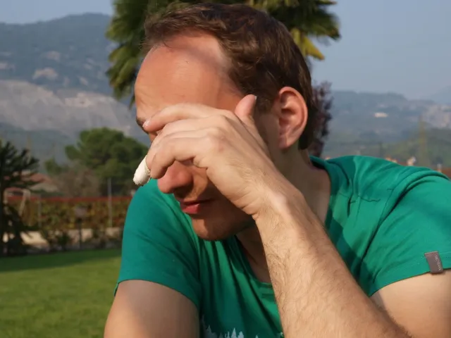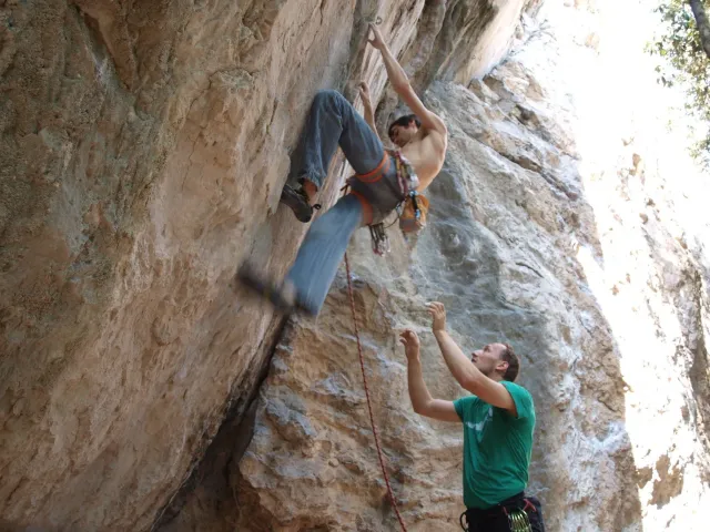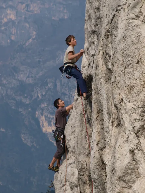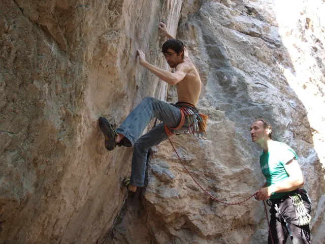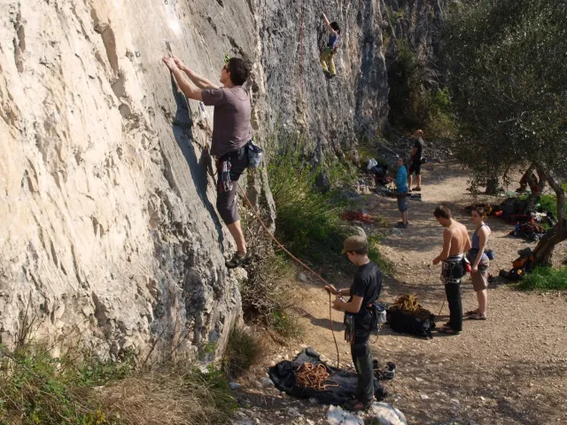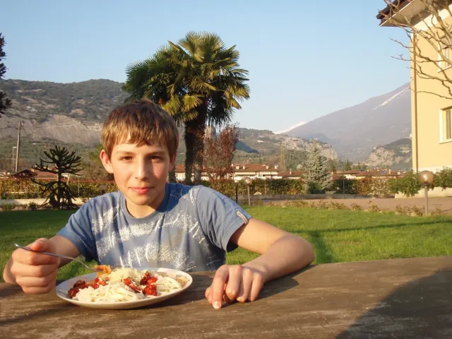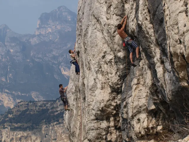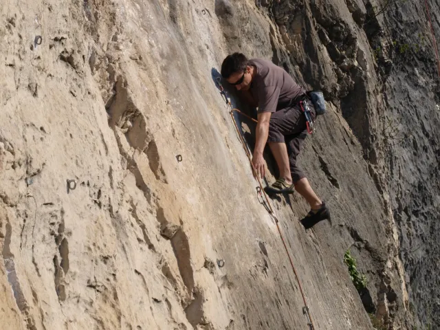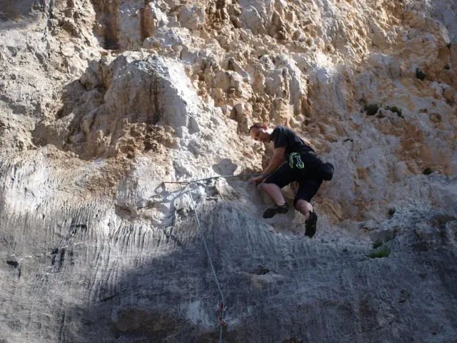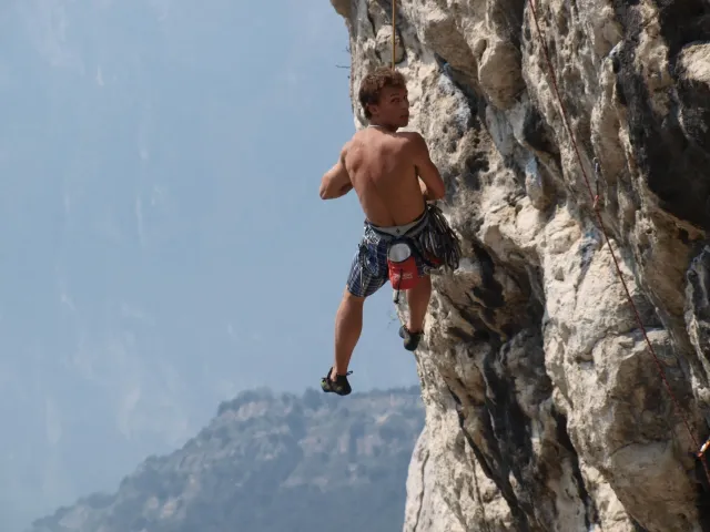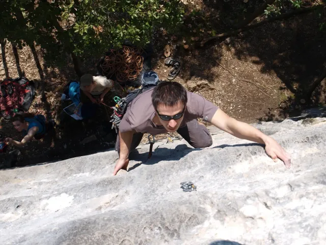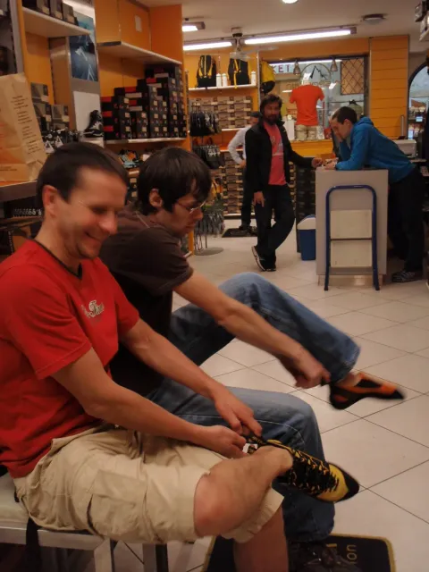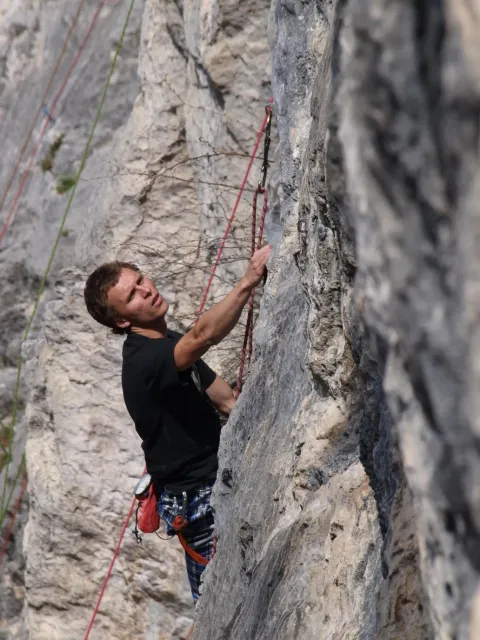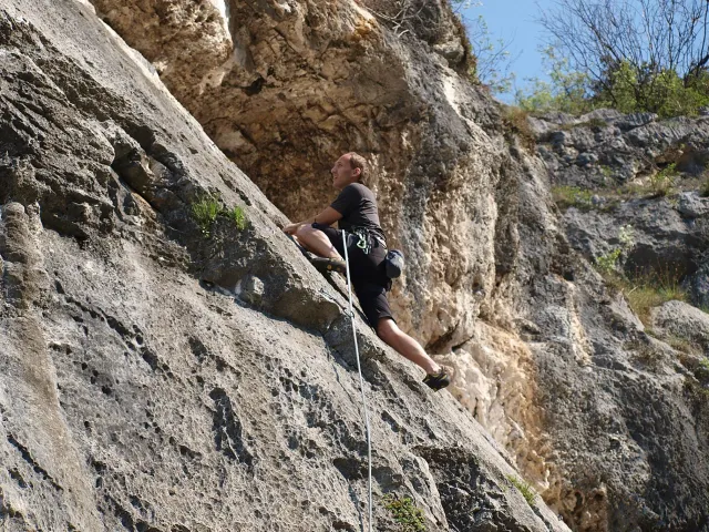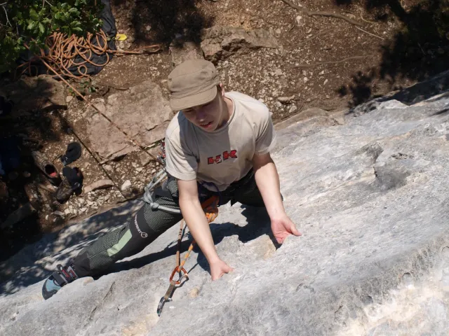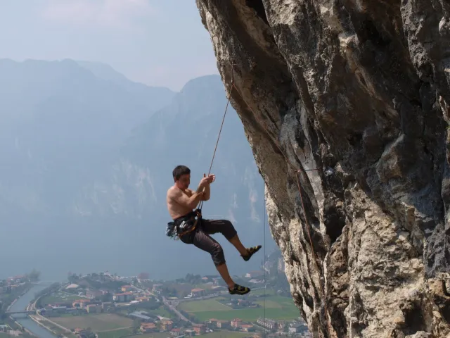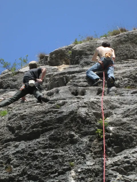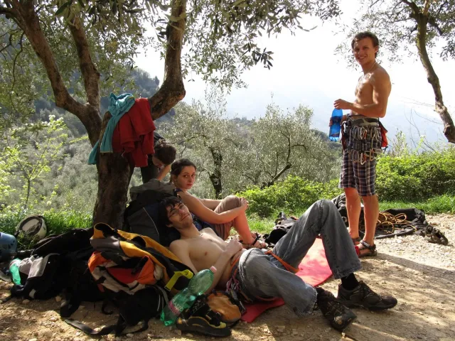 Páté probuzení v Arcu, slunce za okny věští opět řádný hic. Všechna rána mi bohužel splývají, ani toto nebylo ničím výjimečné, snad jen, že mi došel jogurt do musli a taky nám myslím toto ráno došel toaleťák... Dnešní cíl Massone. Ještě než vyjedeme, loučíme se s částí našeho climbing teamu, kteří se musí vrátit do Čech o něco dříve kvůli pracovním, školním a jiným povinnostem a taky aby si stihli večer zalízt na stěně Hacurovi a Prostějováci odjíždějí lízt někam nad jezero, jak se tam měli už nevím, ale určo stejně sluníčkově jako my. Přicházíme do Massone, z atmosféry tohoto místa není cítit nic dobrého, moc nám to dnes nejde, teda alespoň mně. Cesty zde mají sklon spíše negativně horizontální, ale Péťa za mnou vše statečně vyleze. Petr a jeho Učedník rubou nějaké cesty poblíž nás, Dejv zkouší cestu, kterou prý zapytlil HUDY a se slovy "to půjde" nechává ostrý pokus na pátek. Poté ještě chvíli zewlíme pod nádhernou linkou Action Direct (prostě jsme si sedli zrovna tam) a pak už razíme zpět do apartmánu. Dále už si to moc nepamatuju, mám nějaké tipy co se dělo, ale nerad bych někomu vyfouk něco, co patří do jiného dne, takže předávám slovo