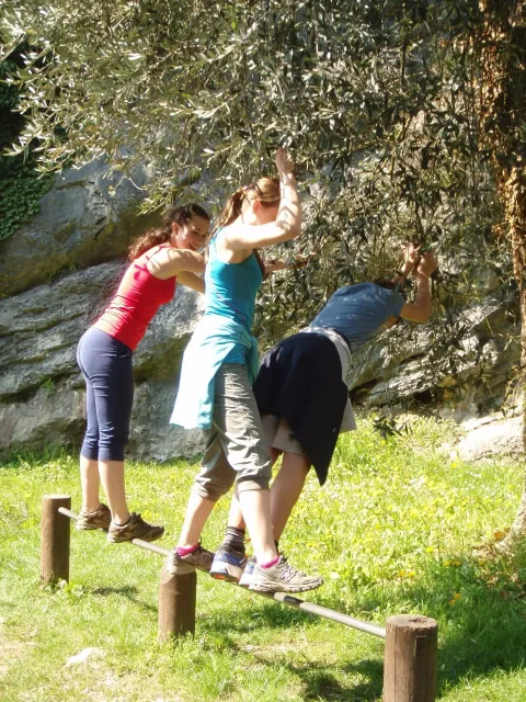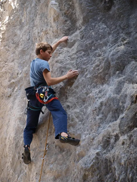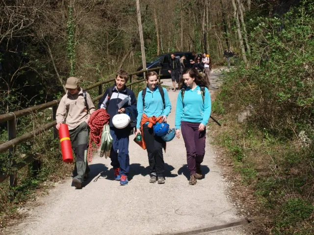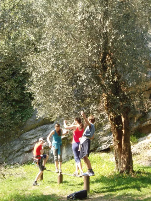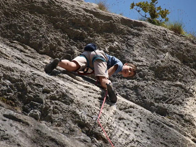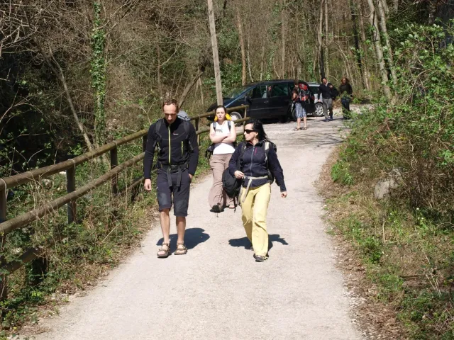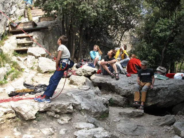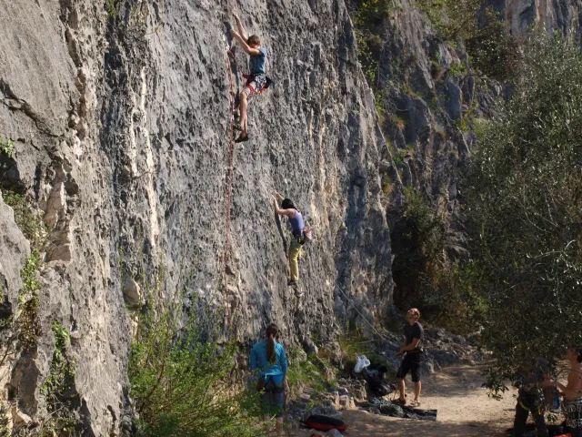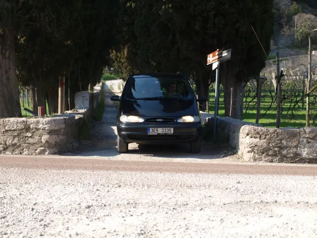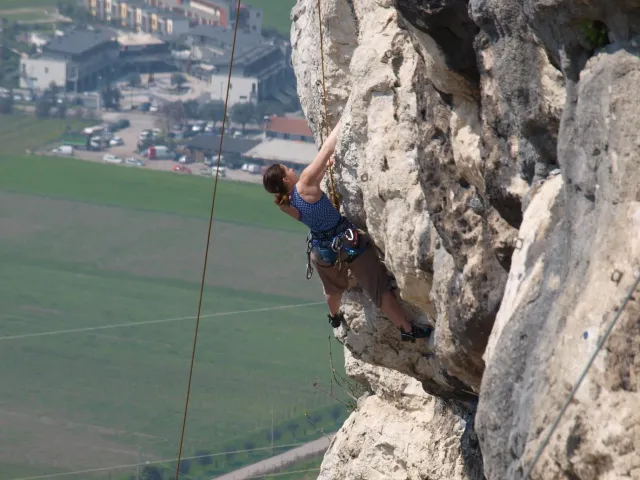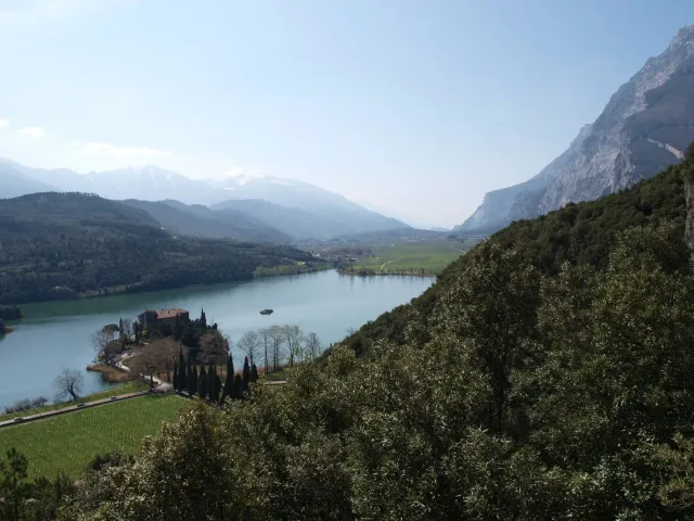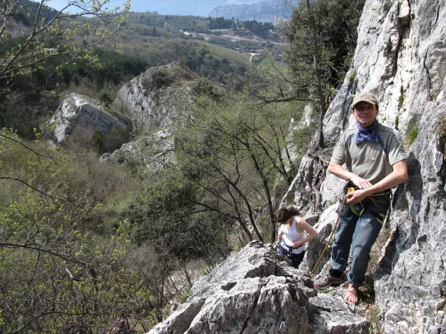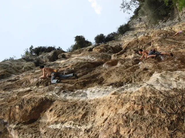 V neděli padla volba na lezeckou oblast La Gola (Valle del Sarca). La Gola leží asi 15km severně od Arca. Když se dojede k hradu na břehu jezera Toblino (na což je nádherný výhled z vršku skal), odbočí se "drsně" (zasvěcení ví jak) do leva na cestu lemovanou nízkými kamennými zídkami a stromy. Za nimi, jak jinak v této oblasti Itálie, plantáže a plantáže vinic, všude kam jen oko dohlédne. Po pár desítkách metrů nás cesta zavedla do úzkého kaňonu. Po strmém výstupu lesem (zde se Dejv ukázal jako schopný tahoun našich puberťáků), jsme dorazili ke skalám a mohli se dát do zdolávání dalších cest. Nejdříve naši mladí využili Dejvovi apatie a neschopnosti cokoliv dělat po náročném výstupu a nakupili na jeho bedra, vše, co měli v dosahu ... několik helem, průvodce a slamáček nevyjímaje....