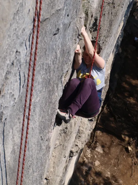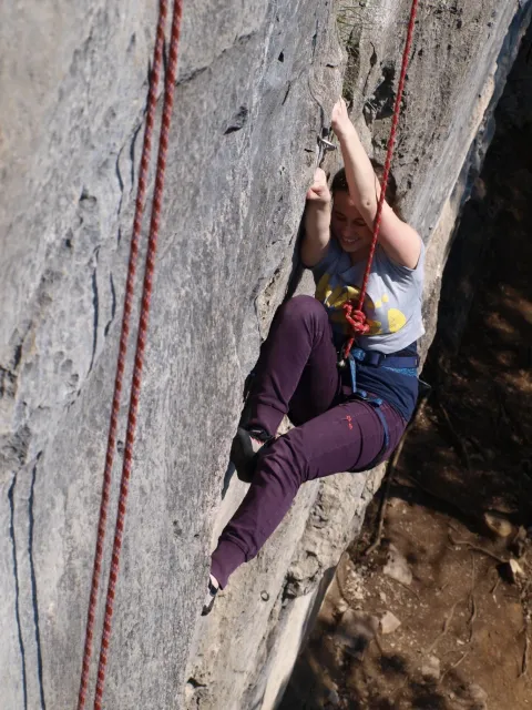 Dařilo se různě, ne každý byl spokojen s tím, co přelezl... Mě nejvíce sedla hned první cesta s mírně ukloněným, lehce rajbasovým vrškem - Arcadioland - 30m - 6a+. Jupí