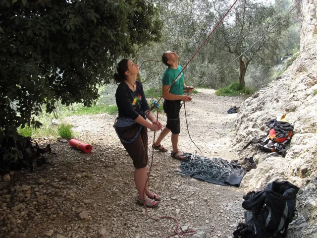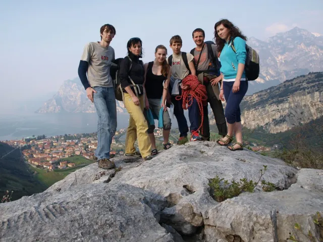 Náš pokoj(Anička, Áďa, Danča, Dejv, Kuba a Zdenek) vstal až neočekávaně brzo. Všichni byli vstalí už před osmou hodinou. Nasnídali jsme se a začali čekat frontu na koupelnu a záchod, který jsme měli jeden pro šest lidí. Poté jsme se šli podívat do druhého pokoje, jak jsou na tom. Udiveně koukali rozespalí z postelí a divili se, že je Dejv už vzhůru. Netrvá to však dlouho a po menším kafíčku všichni vyráží společně do naší letošní první oblastí se jménem Nago. Po dlouhém bloudění a hledání příjezdové cesty k parkovišti jsme už konečně tady. Vezmeme si batohy a vyrazíme ke skále do menšího kopce, který polovinu naší výpravy vysílil. Hned v prvních cestách máme problém, ale všichni ho statečně vyřeší. Je tu vcelku teplo, ale pod mrakem a fouká studený vítr. Vylezli jsme zde krásné cesty a já a Kuba jsme pokořili novou kastu. Ke konci dnešního lezení se rozdělíme a většina jde zkusit lezení o kousek výš. Já s Kubou však zůstávám i nadále zde, protože se nám tu moc líbí. Po příjezdu do apartmánů se všichni ztratí do svých pokojů a netrpělivě a hladově začnou připravovat večeři. Po jídle je stržen další urputný boj o koupelnu. Kdo je znaven dnešní námahou zůstává doma, ale malá výprava se vydává prozkoumat uličky Arca a zdejší obchod se zmrzlinou. Při procházce zjistíme, že jsme vlastně skoro všichni skauti a za plného proudu debat se ještě zajdeme podívat na venkovní stěnu, kterou však vidíme jen za plotem. Večer jdou všichni spát plni očekávání na další den.