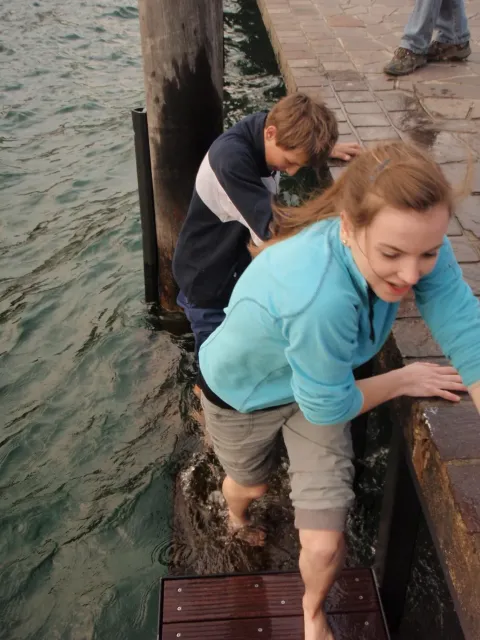 Náš pokoj vstal jako vžycky první. Pro nás to byl poslední den lezení (kromě Dejva), takže když jsme po náročném výstupu a hledání skály dorazili, ještě dlouho trvalo, než zbytek výpravy přišel taky. Dneska jsem lezení pojal spíše "expedičně" a i přesto se mi podařilo vylézt svoji nejtěžší cestu (některým se vedlo podobně). Dejv vedle mě vybušil dvě nejtěžší cesty v oblasti a Zbyšek statečně vyrubal 7a na PO (Po Oscarovi). Po lezení se náš pokoj šel podívat k jezeru, kde jsem s Aničkou zkoušel teplotu vody a Dejv vylezl na nějaký sloup u mola. Po návratu do apartmánů Dejv konečně přišel (po celém dnu narážek typu dala pokouřit) na svoji "nejtěžší cestu" v deníčku, přičemž jeho první slova byla: „ Zbyšane, já tě zabiju “ a Zbyšek za to ve skutečnosti vůbec nemohl. Večer jsme šli na pizzu, kde si Lukáš našel nového kamaráda, se kterým si skvěle rozuměl, i když ten druhý byl Ital. Po návratu jsme se přesunuli do vedlejšího pokoje, kde jsme večer zakončili debatním kroužkem a příhodami typu Vyzyvatel ...
