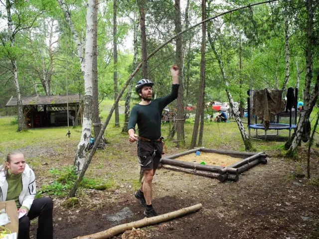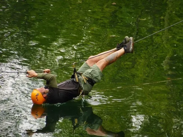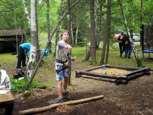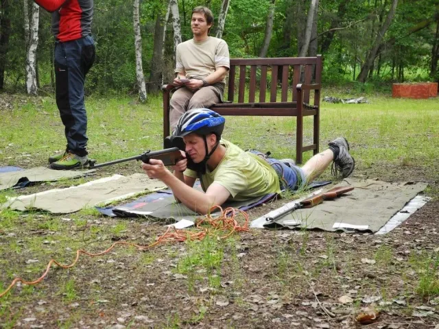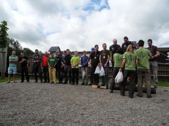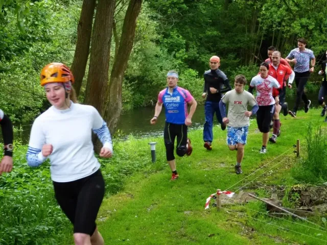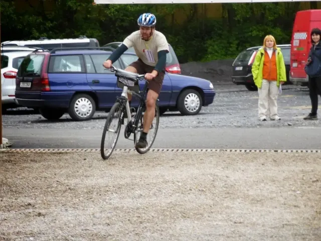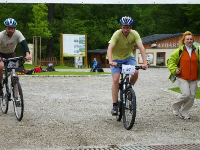 Pořadatelé toho slibovali hodně a připravili ještě víc. Ráno mi trochu poklesla čelist, když jsem slyšel, co nás čeká. Hromadný strat začíná během kolem rybníka, následuje výběh do vrchu, terénní okruh na kole, orinťák bez mapy, koloběh pod skály na Kružberku, nízké lanové aktivity, návrat zpět na místo startu a po tomhle počátečním trápení teprve můžeme vyrazit na kolách vstříc orienťáku, střelbě a přelanění s koupelí. Když přežijete, najdete pár skrytých kontrol, můžete si zaplavat ve Slezské Hartě, zajezdit orinťák na lodi, proběhnout další orienenťák a když i tohle vydržíte a ještě nasednete na kolo, čeká vás slanění kružberské hráze, dva bouldery, troška lezení a krosový běh s brodem řeky. Tak tenhle koláč asi budeme okusovat pěkně dlouho. (Junioři mají o pár disciplín méně). Mapy jsou rozdány, batohy sbaleny, stojíme na startu. Zbyša je jediný kdo běží v pohorách a navíc má bezkonkurenčně nejlepší (plážové) kraťasy, Kuba nejstarší dámské kolo a skoro nejrychlejší nohy v úvodním běhu. Tři, dva, jedna, start .....téměř 100 závodníků se dává do pohybu. Zbyšek a Kuba nám utíkají hned na začátku. Mají svůj závod, svůj plán a svoji hlavu. My ostatně taky. Charli chce dokončit závod, já chci být aspoň předposlední. Běh je horší, kolo jde. Postupně plníme určené disciplíny. Krize nastává na orientačním běhu. Všude kolem běhají dvojice s mapou a buzolou, jen my nevíme kde je depo. Některé úseky projíždíme 3x a depo pořád nikde. Jsem totálně dezorientovaný, sedáme nad mapu a hodnotíme situaci. A najednou se rozsvítilo. Depo určitě nemá číslo "9". A pak už to jde snadno. Charli bezpečně nachází depo, oblékáme sedáky, bereme mapu a běžíme hledat lampiónky. Přelanění je zákeřné. Trošku jsme nasákli vodou. Snad jen Kuba udržel své kosti obalené kůží těsně nad hladinou. Na střelbě střílíme povinných 50 bodů + penéle 50. Lukem se nedaří, vzduchovku bych neudržel, šipky jsou moje záchrana.