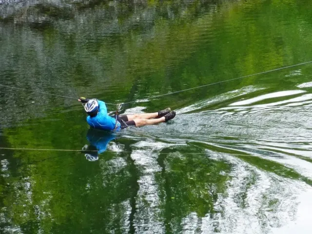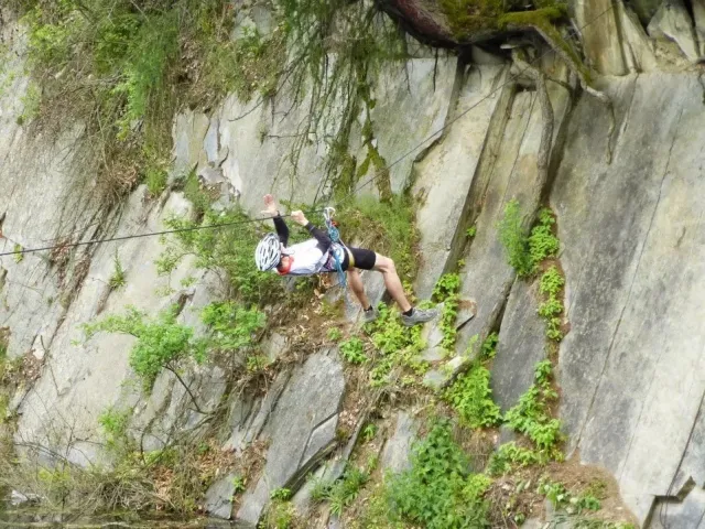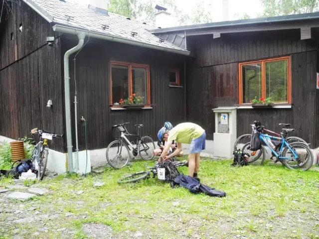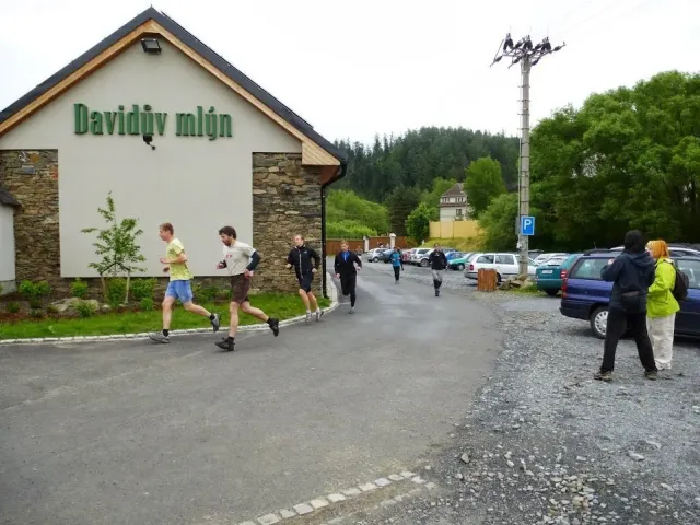 Bolder a skály jsou příjemným vydýchnutím, obtížnost lehčí než čekáme. Krosový běh s broděním řeky se běhu nepodobá. Mozek by chtěl, plíce se brání. Mraky nasáklé vodou začínají upouštět první kapky. Do cíle dojíždíme v mírném dešti. Přežili jsme !!!