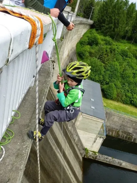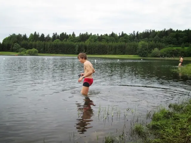 Během přesunu potkáváme Zbyšu s Kubou, nahazujeme úsměv a optimistický výraz... Zbyša nezklame. Ujišťuje nás, že jsme poslední. Před Leskovcem fučí, obloha plná mraků. To bude koupáníčko. A jdeme na to. Azimuťák na lodi. Trošku jsme ho zkrátili - dvě stanoviště jsme nějak záhadně vynechali. Kuba a Zbyšek řešili stejný problém na souši - taky nějak záhadně zkrátili azimuťák. Asi jsme měli špatné buzoly a nebo nějaká zákeřná magnetická anomálie :-) . Hned na to pamatovák ve vodě a jen co otřepeš vodu z těla azimuťák na souši. Tutově máme za sebou víc jak polovinu, optimismus stoupá. Kolem Slezské Harty a Kružberka se vracíme pod skály. Charli slaňuje hráz, já zajišťuji odvoz. Vody je málo, ale i ten slabý protiproud je znát.