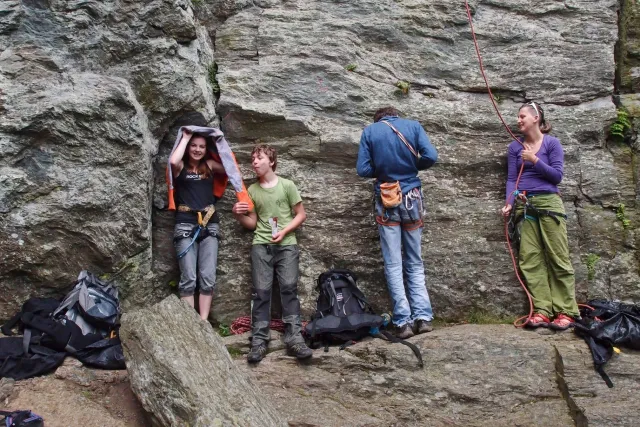 Lezkyně, lezci krásný den.