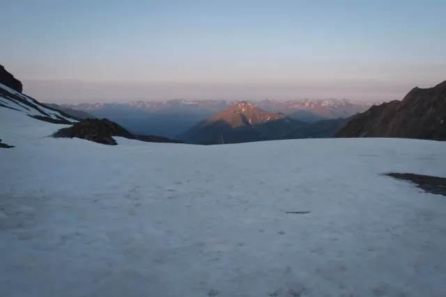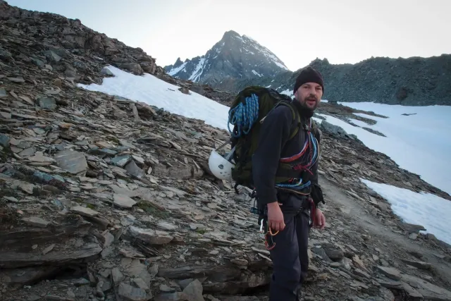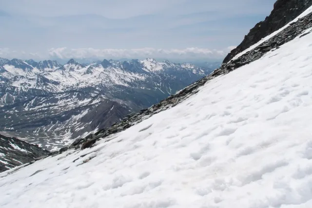 Z pověrčivosti nikomu nevolám ani nepíšu smsky, že máme „poděláno“, protože každý výstup v horách končí až po bezpečném návratu. Pohled na zasněžený hřeben malého Glockneru a celkový charakter sestupového místa naznačuje, že ještě bude co dělat.