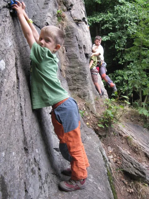 Jak čas plynul, ostatatní stejně staré děti už začínali vyslovovat své první slůvka, ale malá Terezka mlčela až do doby, kdy jí rodiče vzali poprvé pod skály. Terka pozorně poslouchala, protože v kočárku se moc jiných věcí ani dělat nemohla. Slyšela slova jako lano, lezečky, skoba, jdu, dober a mnoho dalších.... Jí se však z téhle nádherné směsice slov zalíbilo pouze jedno magické, kouzelné a významné slovo. Ano, jak určitě tušíte, bylo to slovo dober.