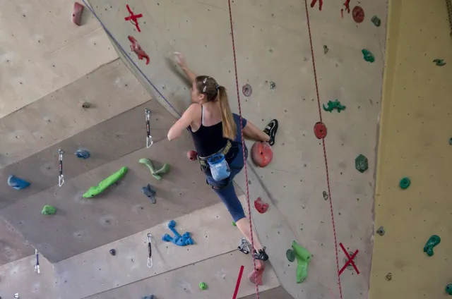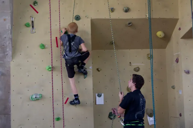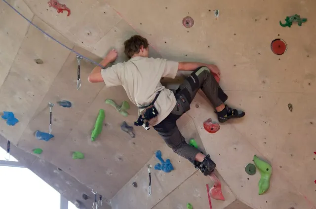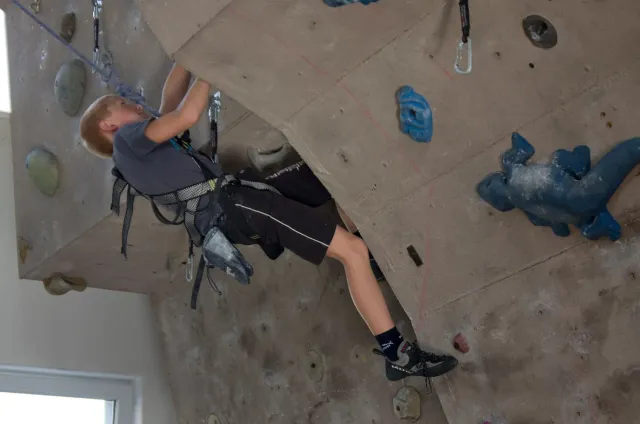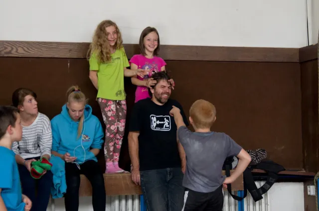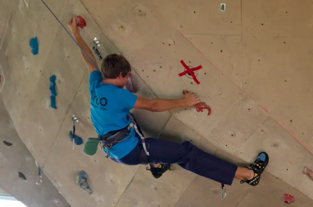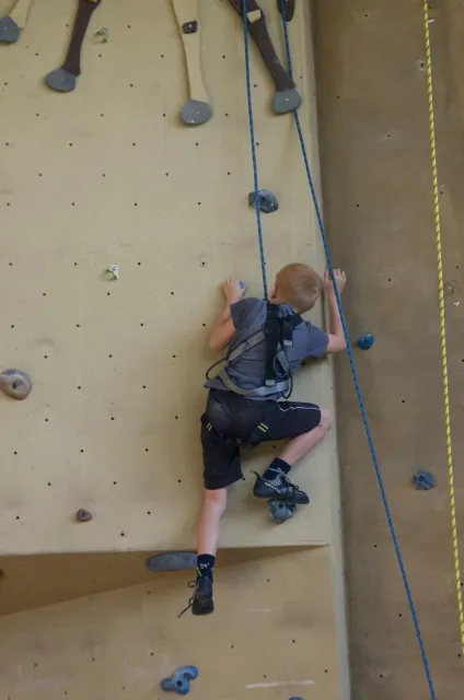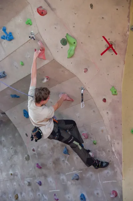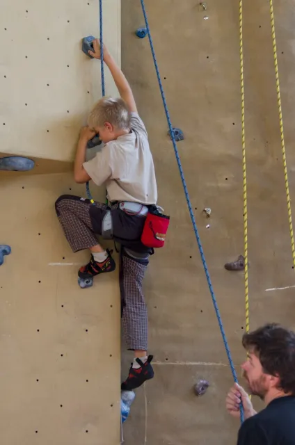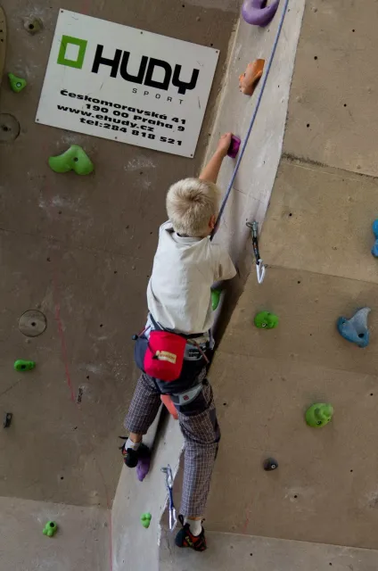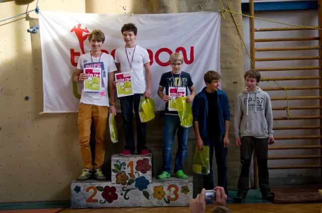 Jako vždy jsme se zaprezentalovali a šli jsme zjistit, jaký cesty lezeme. Díky ,,nenápadnému“ dívání do papíru rozhodčích bylo skoro hned dosaženo tíženého cíle, snad i díky letité praxi :D. Předlezení cest pro 3 nejmladší kategorie trvalo asi hodinu a nebylo vyjímkou, že si předlezec sedl nebo spadl(i přes to, že kvalifikačky byli opravdu lehké). Když po 11.hodině konečně začínala závodit nejmladší kategorie, na nástěnce nevysely ještě ani startovací listiny. Naše kategorie B začínala závodit o čtvt hodinky později. První začínaly holky na pravé hraně převisu a ještě měly dodatečné „předlezení“, při kterém se musela ještě upravovat cesta. I tady předlezec nezklamal, použil kouzelné slovo dober a odsedku. Jak se začalo lízt, už skoro všechno šlo bez problémů. Mezi zanedbatelné maličkosti patřil jistič od záchrané služby, který měl obráceně kýbl, a další jistič, který nedobíral a to i v topu....Nutno ještě říct, že nedostatky se netýkaly jen lezců, bohužel i našeho dozoru, který byl opravdu zklamán absencí piva v bufetu, ale z části to vynahradila sekaná v housce. V pauze před finálem jsme museli zabavit unuděného Libora. Míra nudění byla tak velká, že mu stačila známá ,,hra“ kámen, nužky, papír. Po téhle užasné zábavě následovala hra kompot.Kvůli kamarádským rozhodčím jsme se museli přesunout ven, naneštěstí bez Libora. Venku jsme zase změnili repertuál na nějaou mrkanou a šlapku( pro mě s divnými pravidly ). Hru ukončil nástup do finále. Při prohlídce bylo úspěšně zjištěno, že lezeme cestu, která vypadá na pohled lehce( až na jedno místo) a stímhle pocitem jsme se vydali do poměrně velké a čistě šastny(izolace).Na lezení nás vodili jako psy, přivázané na laně. Nebylo nás tam naštěstí moc a lezení odsýpalo, takže do hodinky jsme Kuba i já odlezli. Po odlezení byla zajmává situace: 5 lezců vypadlo ve stejném místě, Já jsem dolezl do težkýho místa, ve kterém bylo nutné vyměnit ruce pro smysluplný postup dál, bohužel jsem při výměně vypadl, čtvrtý Kuba dolezl stejně jako já, ale skočil, třetí Ondřej Bína dolezl stejně jak Kuba, ale měl lepší čas a proto byl třetí. Druhý Bart dolezl s velkýma problémama jak my, necvakl, skočil a s nejlepším časem byl druhý. Matěj Plšičík to vyhrál, chvíli podržel chyt výš. Smůla je, že i s pokusem o výměnu jsem měl o jednu sekundu lepší čas než Bart. U holek se to ve finále pěkně rozhodilo a snad nebyl ani jeden stejný výsledek. Při čekání na oficiální vyhlášení jsme si všimli chytů ve finále holek, asi jedna polovina byly zvířátka. Po vyhlášení jsme šli udělat rychle společnou fotku a nákup, díky němuž jsme kousek dobíhali vlak. Cesta domů probíhala klidně, bavili jsme se o důležitých věcech, jak to mají pubertáci ve zvyku. Dost živě jsme taky diskutovali Dejva a jeho trenérské vlohy. V Český byl pouze chvilkový problém s placením za parkovné a pak už nám nic nebránilo jet domů, kde jsme byli kolem půl devaté.