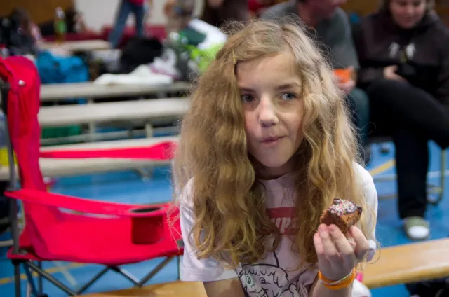 V sobotu 9.11. jsme jeli na závod do Trutnova. Jely tři auta. Jedno řídil Dejv, druhé Libor a třetí taťka. Byl tam bufet a záchod s pavoukama. Já a Zuzka jsem skákali po Dejvovi. Chytli jsme ho za nohy a on nás táhl po schodech dolů, aby jsme se podívali na velkou stěnu. V bufetu jsme si koupili různé dobroty. Někteří kluci si koupili energetický nápoj a pak se s nima nedalo cestou zpátky v autě vydržet. Pro mě byly cesty těžké. Ani jednu jsem nevylezla až nahoru, ale přesto jsem skončila 16. z 24. Domů jsme se vrátili až v sedm hodin večer.