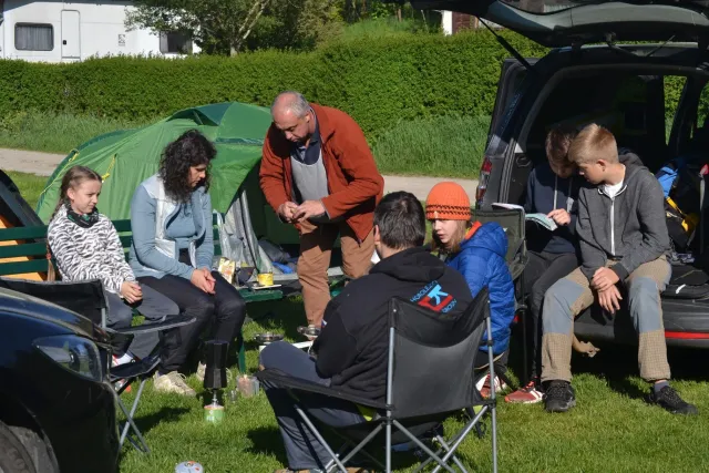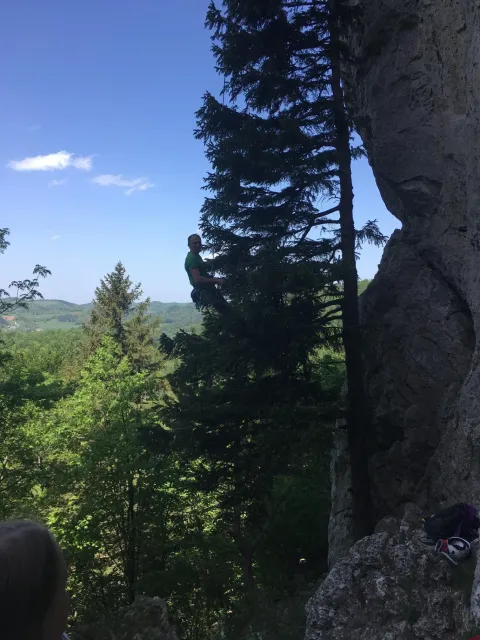 Na místě jsme stihli v pátek večer postavit stany, nabalili se do spacáků každý po svém a všichni jsme doufali, že noc nebude příliš chladná. Noc chladná byla docela dost, ale přežili jsme kupodivu všichni bez úhony a mohli si tak vychutnat dva parádně prosluněné lezecké dny ve skalách.
