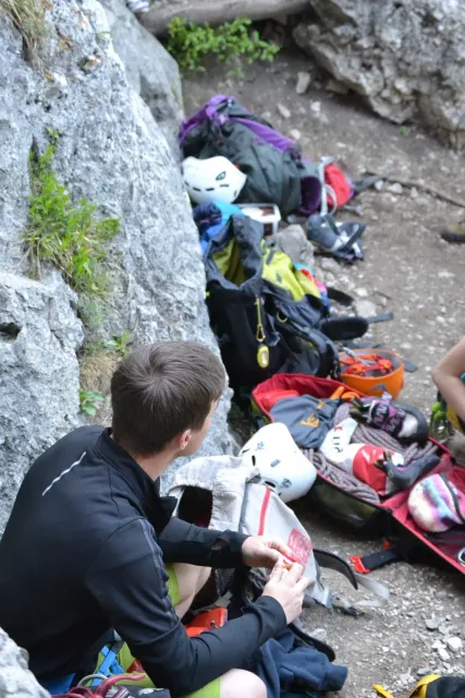 Sobotní lezení jsme zahájili v sektoru V - Großer Zinnenkessel a pozvolna pokračovali do sektoru U - Große Zinne a T - Kleine Zinne. Nedělní lezení jsme si vychutnávali v sektorech M - Vegetarierwand a N - Cimone. Pustili jsme se do cest různých obtížností, cca od čtyřek do osmiček, každý dle svých sil, často s myšlenkami na výroční oddílové kastování. Dětem se dařilo, takže směle spřádali teorie, jakou že kastu si budou hlásit. Jen D'artagnanův táta považoval kastování za hodno zrušení. Obává se nejspíše, že synek bude rád a často využívat práva na balení lana nižší kastou... Uvidíme.