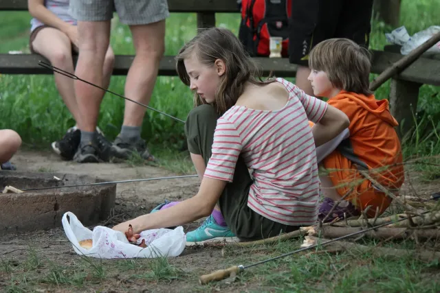 Cyklistický výlet na Marjánu je každoroční tradiční akce pro „kroužkové“ děti, jejich rodiče a sourozence. Start naší trasy byl u Konzumu na sídlišti. Téměř všechny děti dorazily se svými rodiči a společně jsme s obavami sledovali zrovna ne přívětivou předpověď počasí. Zatímco Čárlí s Auťákem na Mariánské hoře připravovali lanové překážky pro děti, my váhali, kdy vyrazit a zda vůbec. Nakonec především statečné maminky a děti přesvědčily Fouse a mohlo se vyrazit. Děti šláply do pedálů (na některých bylo znát, že v této disciplíně mají co dohánět) a už za sluníčka jsme přes Třešnovec (zadní cestou přírodou) dorazily do cíle. Následovalo testování zdatnosti, šikovnosti a síly dětí na skvěle připravených překážkách a hrách. Poté jsme za odměnu opekli buřtíky a zase hurá zpět stejnou cestou do Lanškrouna.