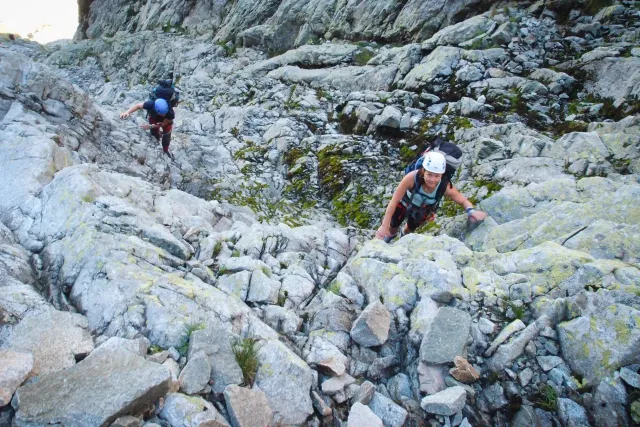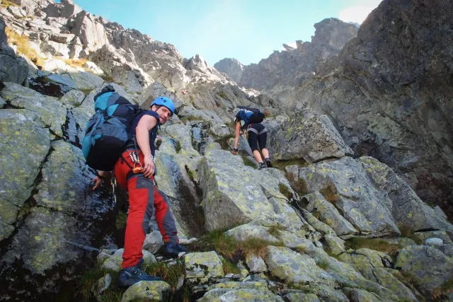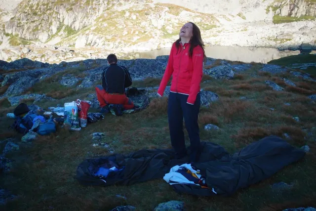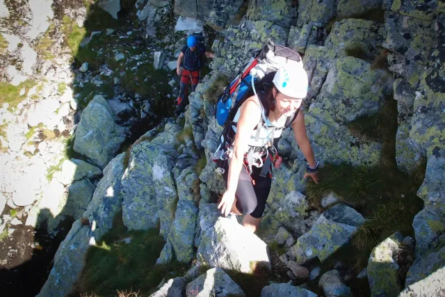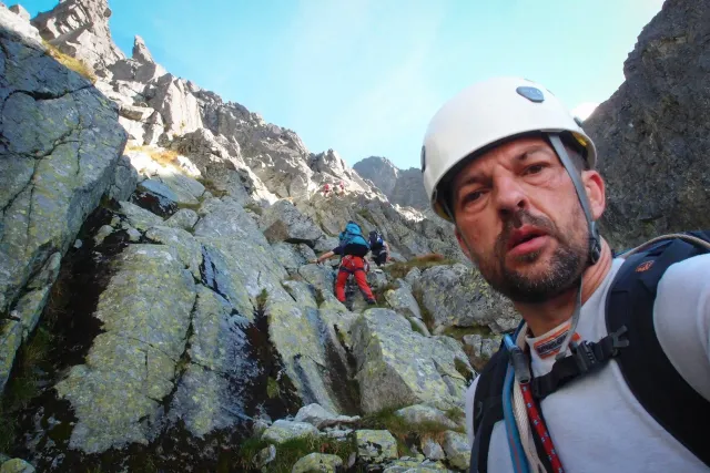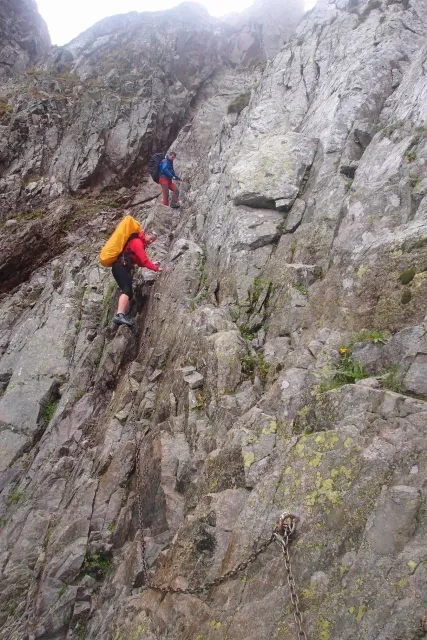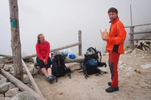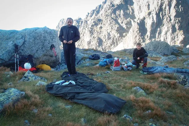 Z Tatranské Polianky jsme se už za sucha vydali na Sliezský dom s cílem přejít čtyři sedla a vyškrábat se na Malý ľadový štít, kde jsme chtěli přenocovat. Turistický chodník na Sliezský dom byl po záplavách stále neprůchodný, takže nás odklonil na poněkud nudnou asfaltku. Výstup nám však ve chvíli, kdy jsme poprvé zahlédli chatu, zpestřil deštík, který za chvíli přešel v průtrž tak vydatnou, že na nás během chvíle nezůstala nit suchá. Po několikahodinovém sušení a čekání na chatě se počasí umoudřilo a my se vydali dál. Přešli jsme Polský hřeben, pokračovali přes Prielom do Velké studené doliny a našim posledním velkým výkonem tohoto dne bylo překonání Priečného sedla. Na rozcestníku pod sedlem jsme se jednohlasně shodli, že vzhledem k počasí bivak na Malém ľadovém štítu oželíme a tak jsme zanedlouho přepadli Zbyška na Terynce. Přes obrovské pracovní vytížení se nás Zbyšek ochotně ujal a při pivu nám v průběhu večera poskytnul cenné rady pro nedělní výstup. Odolali jsme nabídce na suchou postel a dobrou Terynskou večeři a vydali se hledat bivak a vařit instantní polívku. Na překrásném plácku nad Terynkou jsme se uvelebili ke spánku a pod jasným nebem plným hvězd střídavě upadali do spánku a odháněli fiktivní medvědy kradoucí Pavlovu konzervu od guláše.