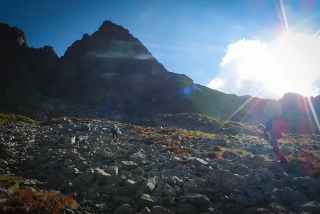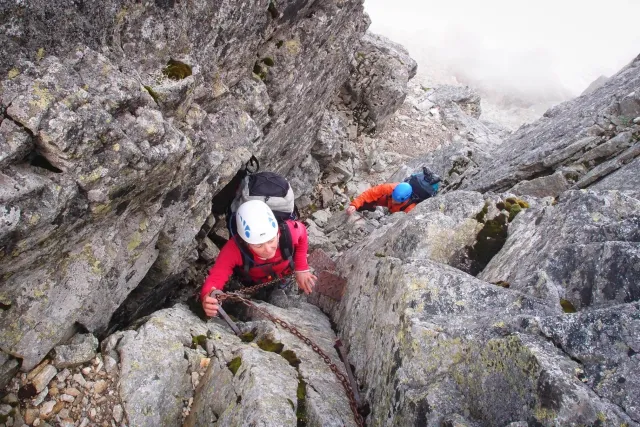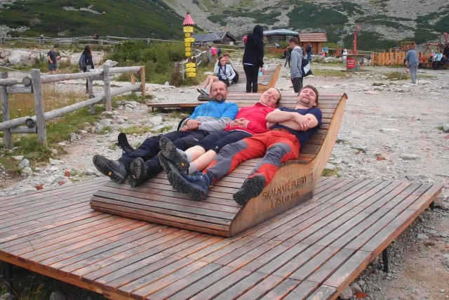 Ráno nás přivítalo sluníčko a jasná obloha a my se vydali na výstup na Lomničák. Teryho kuloárem jsme se napojili na Jordánku a společně s kamzíky vyšplhali nahoru. Slunečné počasí dlouho nevydrželo a na vrcholu nás kromě turistů vítalo mlíko, které zahalilo veškeré výhledy. Dlouho jsme se nezdrželi a vydali se na sestup zajištěnou cestou zvanou Emericyho nářek ke Skalnatému plesu. Davy turistů vlečených horskými vůdci nahoru náš sestup trochu brzdily, ale náš klid ani radost z výstupu to nemohlo narušit, jen jsme si o trochu déle užívali kopce. V sedle na nás svůdně pokukovala lanovka, ale my jsme jí odolali (kluci téměř dobrovolně). Dole pod kopcem jsme ovšem podlehli komerci a dopřáli si sjezd na koloběžkách, který nám cestu zkrátil o necelé tři kilometry po asfaltu. Pak už nás čekaly jen samé jistoty a pozitiva – cukrárna, termální koupel, nákup sýrů a šťastný návrat.