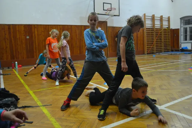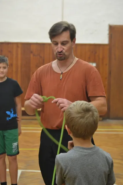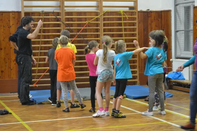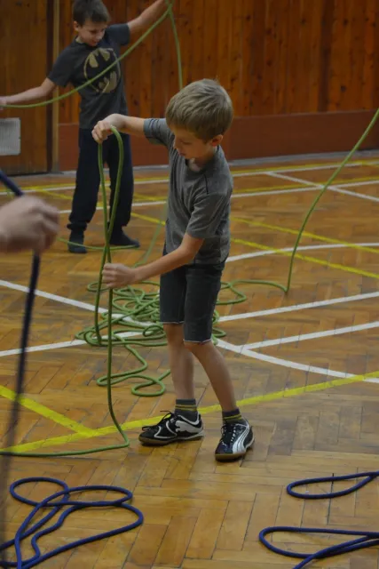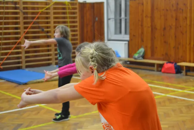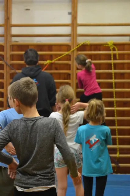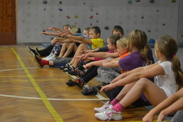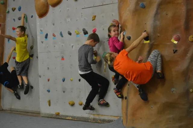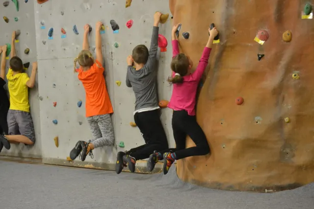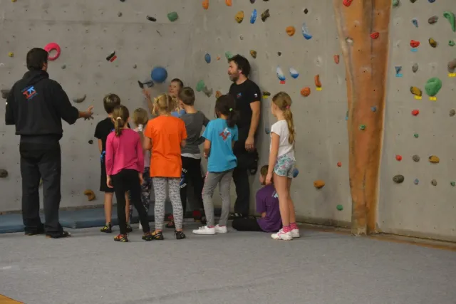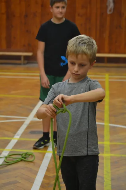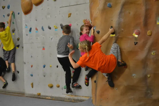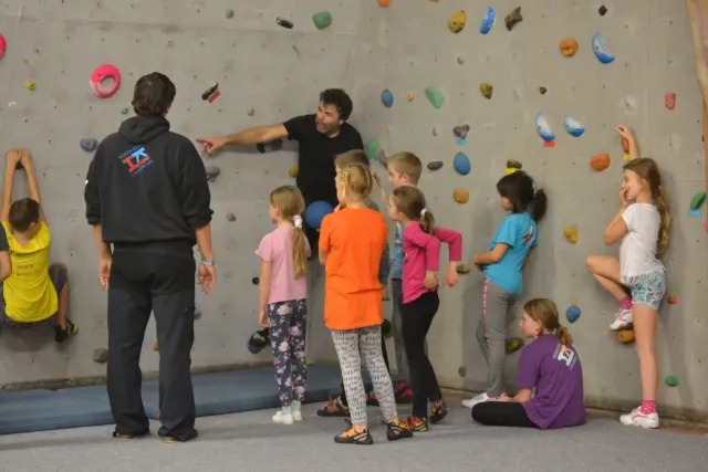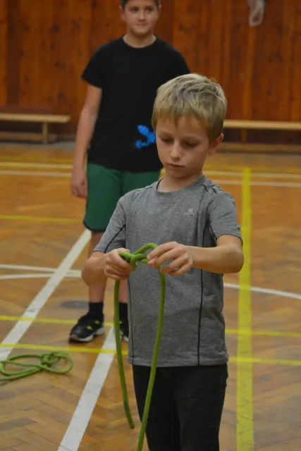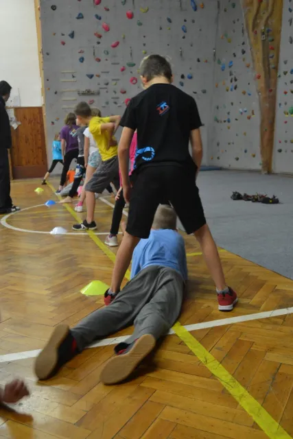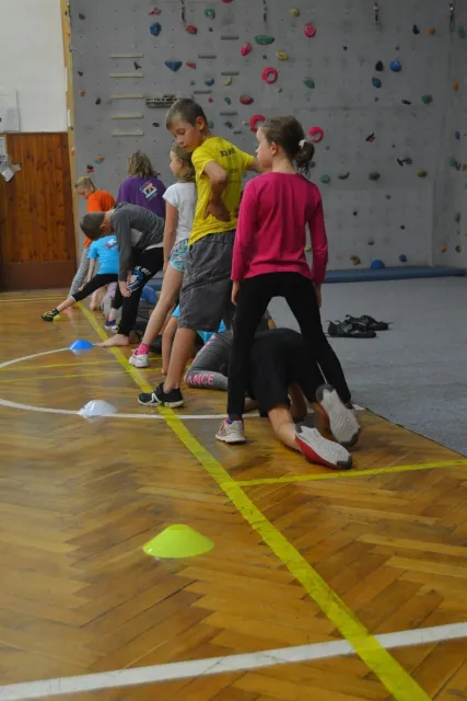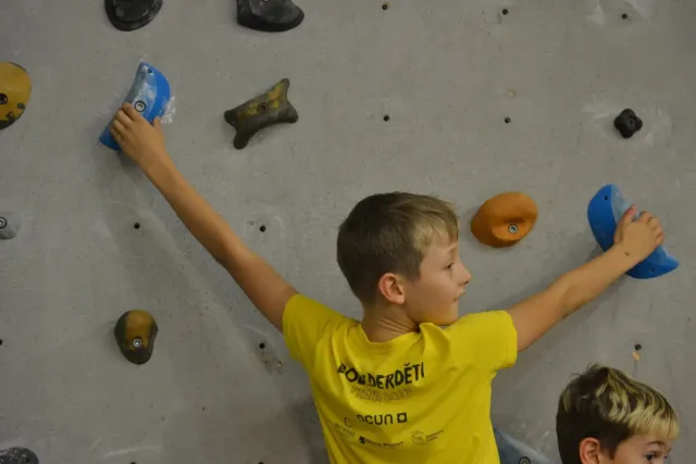 Letos si pro aktivní trávení volného času vybralo lezení přes 60 dětí. Jak si užívají lezecké a další pohybové aktivity je vidět z přiložených fotografií. Pohybové hry na rozhýbání, nezbytná rozcvička, bouldering hrou, techniky navázání se na lano, ... To bylo téma dnešního dne.