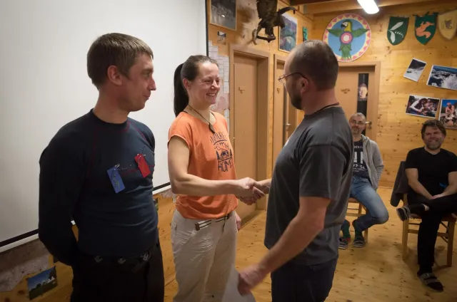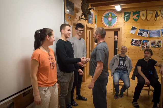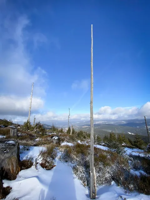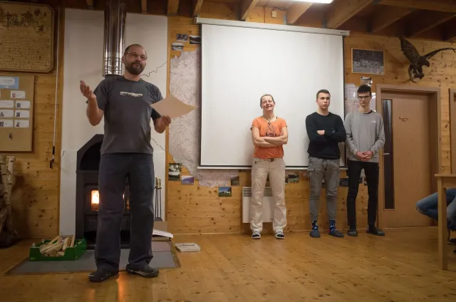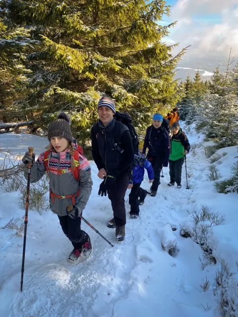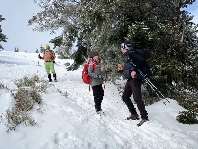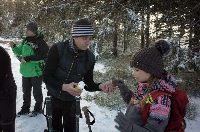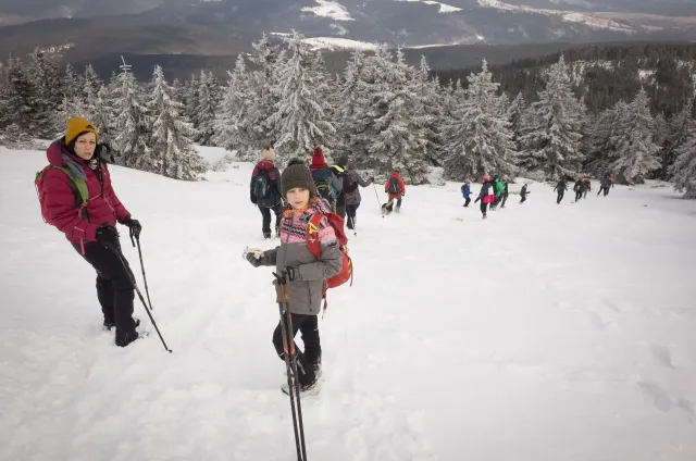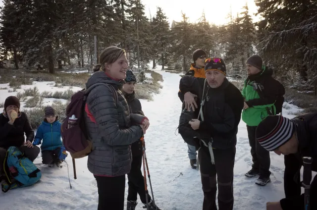 Po jednom vynechání způsobeném kovidem můžeme oslavit ukončení lezecké sezóny 2021 zase tradičním způsobem, výstupem na náš Kralický Sněžník a večerním ceremoniálem. Účast na vycházce byla mimořádná. Někteří staří bardi sice nemohli, nahradili je však nadšení nováčci a také malí mládežníci se předvedli nadšením ve šlapání do kopce. Právě pro ně jsme zvolili poprvé trasu ze Stříbrnice na vrchol a zpět. Příroda nás odměňovala svěžím mrazivým vzduchem a jasným slunkem. To se sice po čas strávený na vrcholu schovalo, ale to tu není neobvyklé.