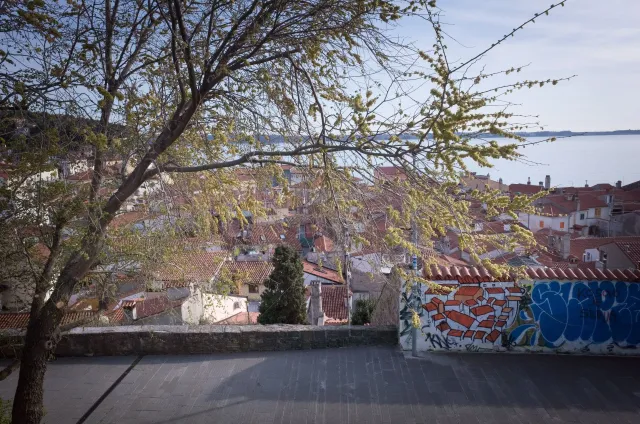 Je pátek a přejíždíme do slovinského Ospu, kam dnes dorazí kamarádi z oddílu. Po cestě se stavujeme v Jablanacu, odkud je vidět ostrov Rab, kde byla naše první rodinná dovolená u moře. Ve Slovinsku pak prozkoumáváme nádherné městečko Pirano s čevabčičárnou (rozuměj hospodou, kde se podává čevančiči) a zmrzlinárnou. Až večer se ubytováváme v apartmánu s růžovým pokojíčkem přímo pod stěnami v Ospu a jdeme pobesedovat s lanškrouňáky a seloutkovskými.