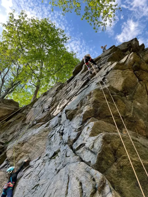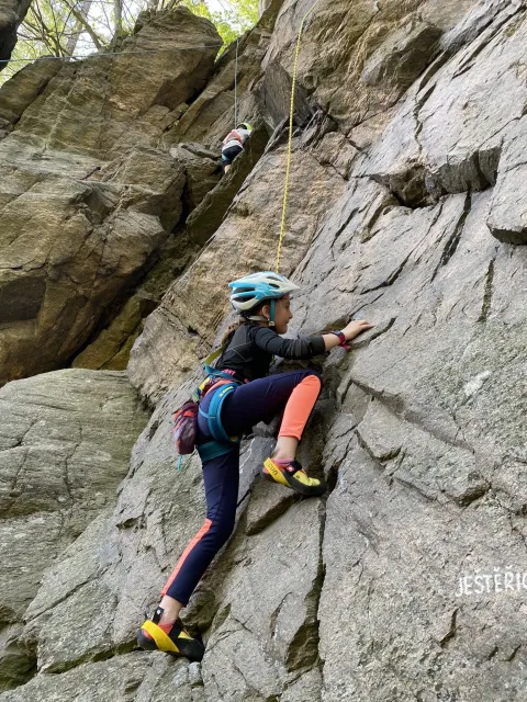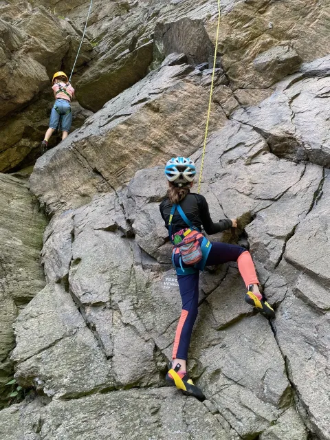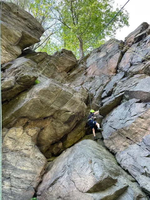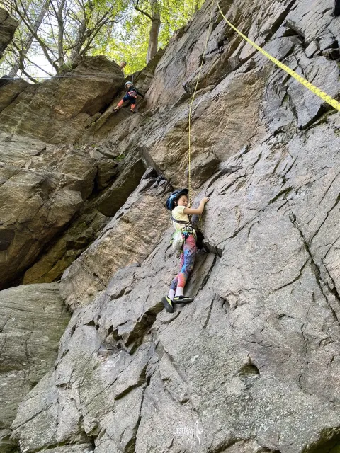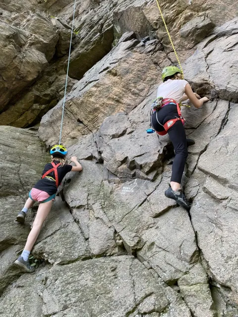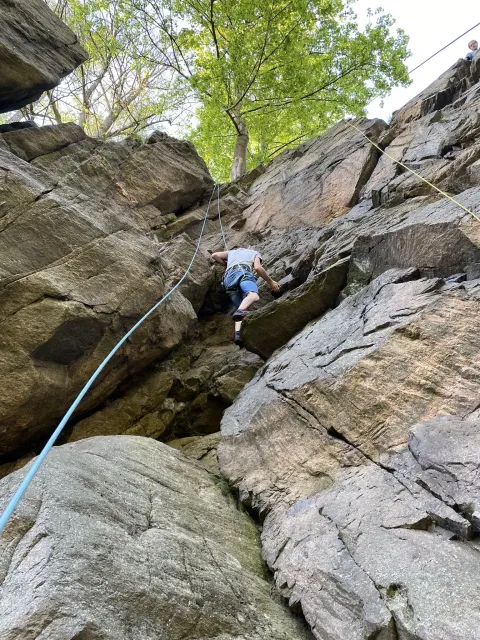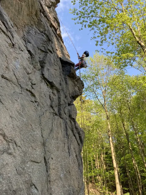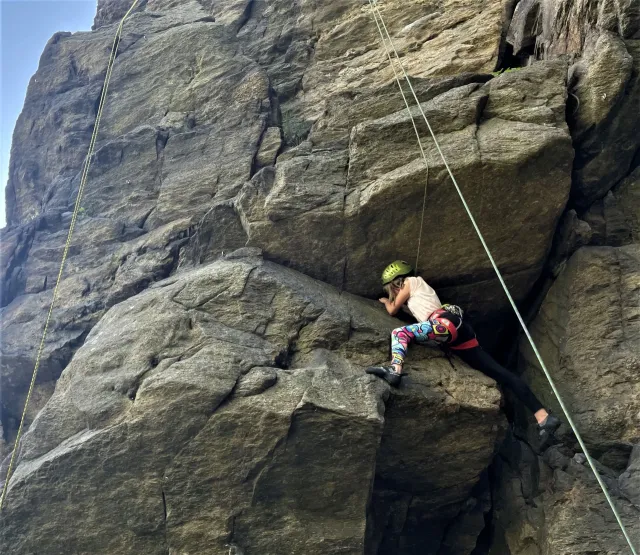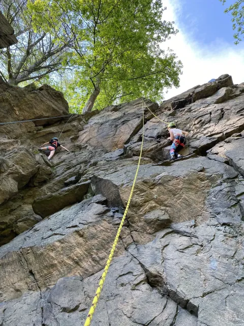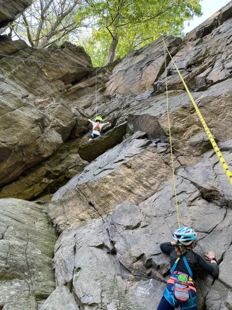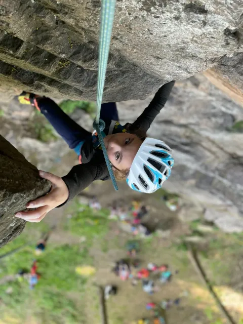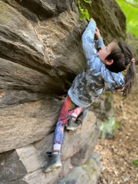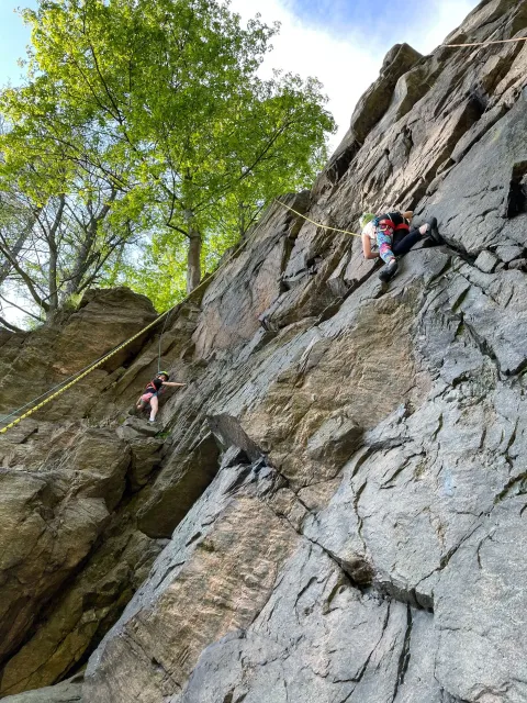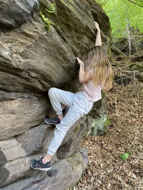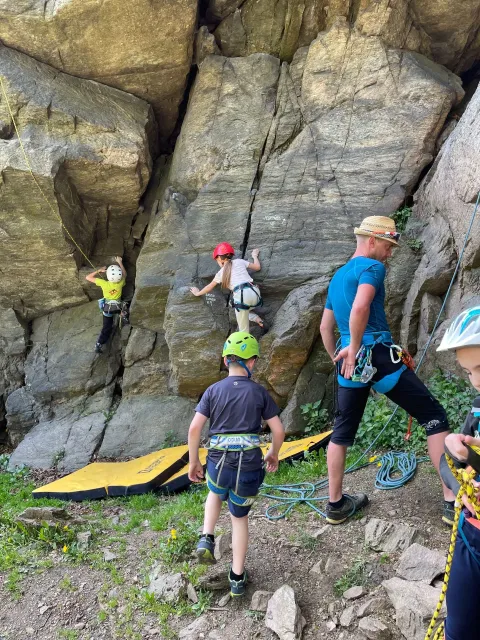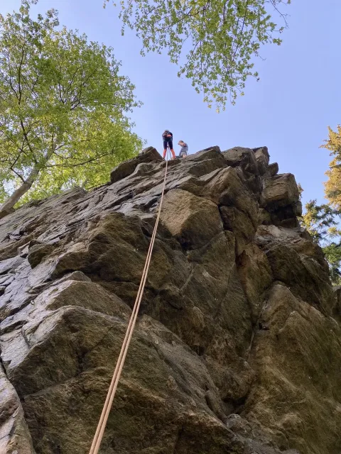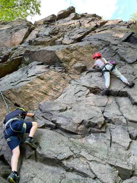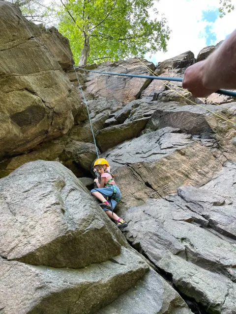 Skalní lezení si vyzkoušelo 17 dětí (z prvního a druhého kroužku), někteří úplně poprvé. Děti si mohly vyzkoušet i slanění, které jsme zatím nacvičovali jen na žebřinách nebo umělé stěně. Někdo se trochu zalekl výšky a slanění odložil na příště. Jednoznačně nejvíc se to zalíbilo Tomovi Č., který využil možnosti vyběhnout na skálu a pohodlně sjet dolů hned několikrát.
