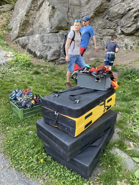 Zatímco jsme závěrem akce s dětmi objevovali kouzlo boulderingu na skalce opodál, dospěláci pomohli Čárlímu a Zipovi zabalit a naskládat všechny ty lezecké „výzbrojky“ do aut a plni nových dojmů jsme byli po sedmé hodině zpátky v Lanškrouně.